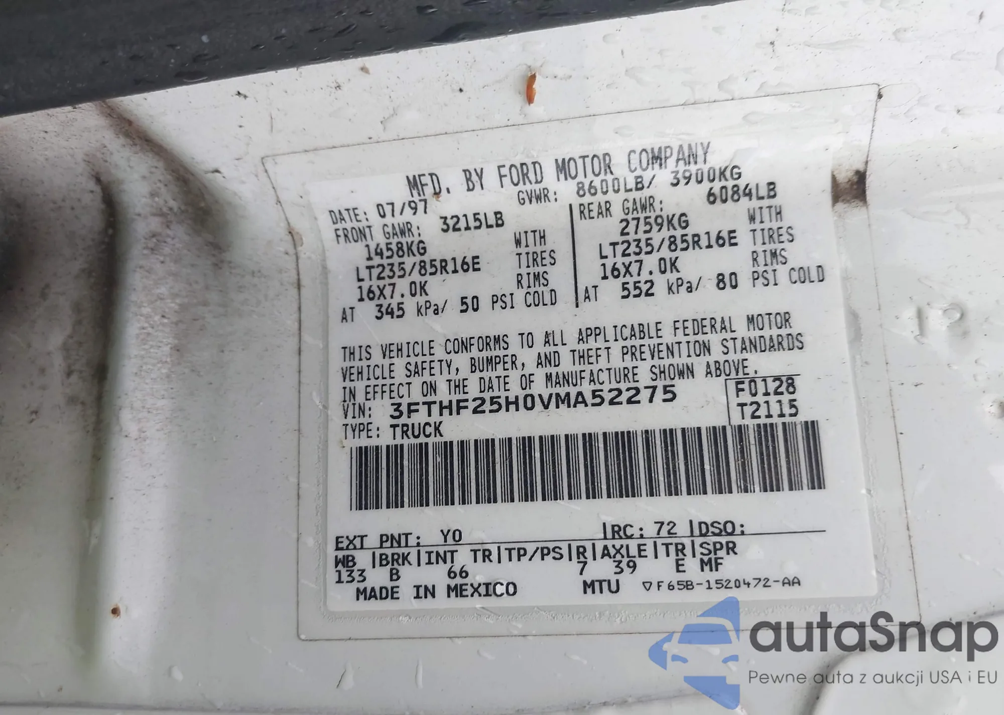 • VIN 3FTHF25H0VMA52275