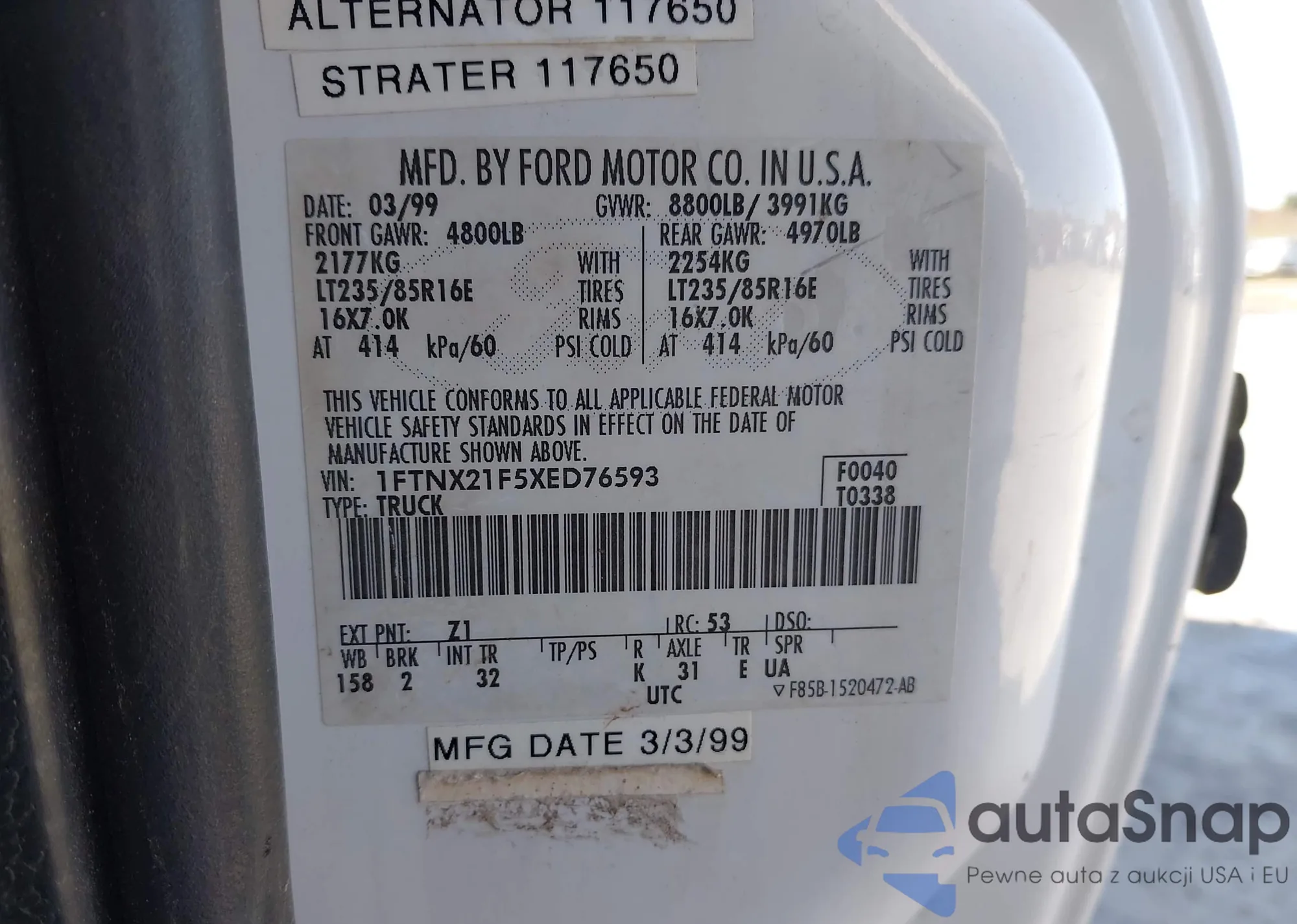 • VIN 1FTNX21F5XED76593
