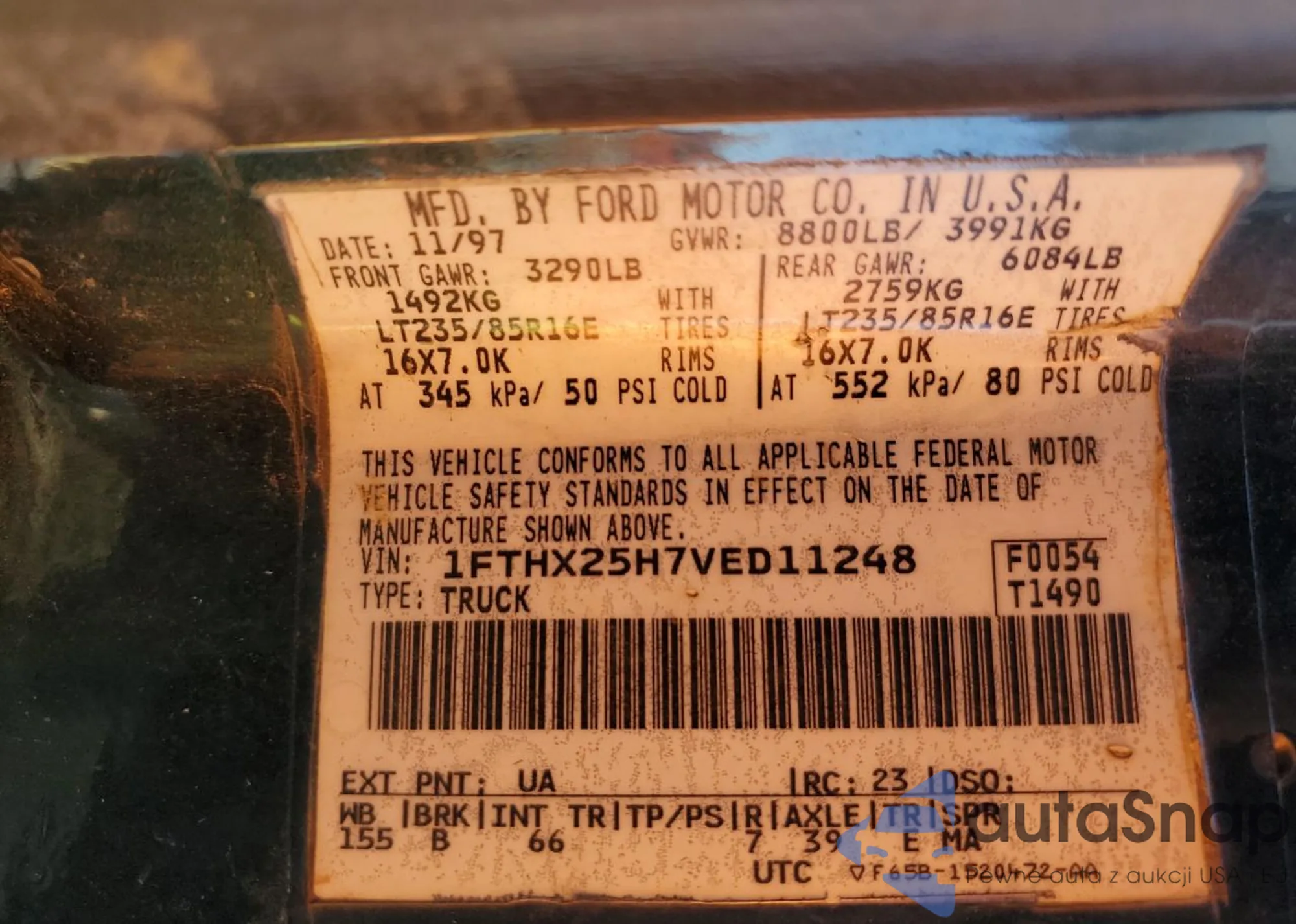 • VIN 1FTHX25H7VED11248