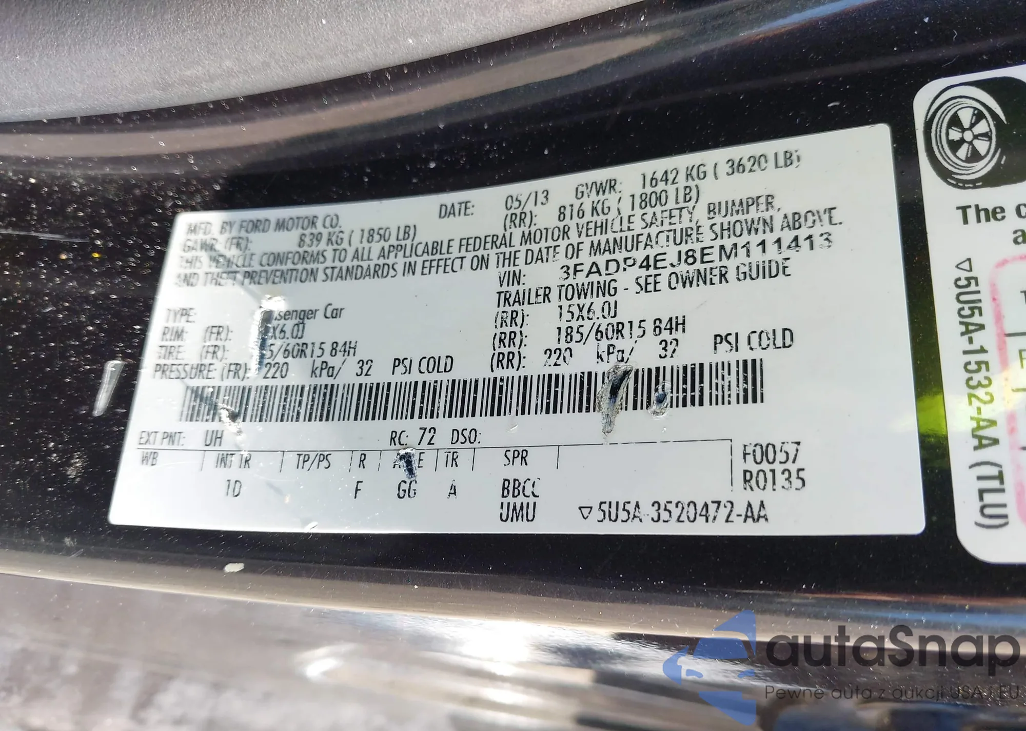 • VIN 3FADP4EJ8EM111413