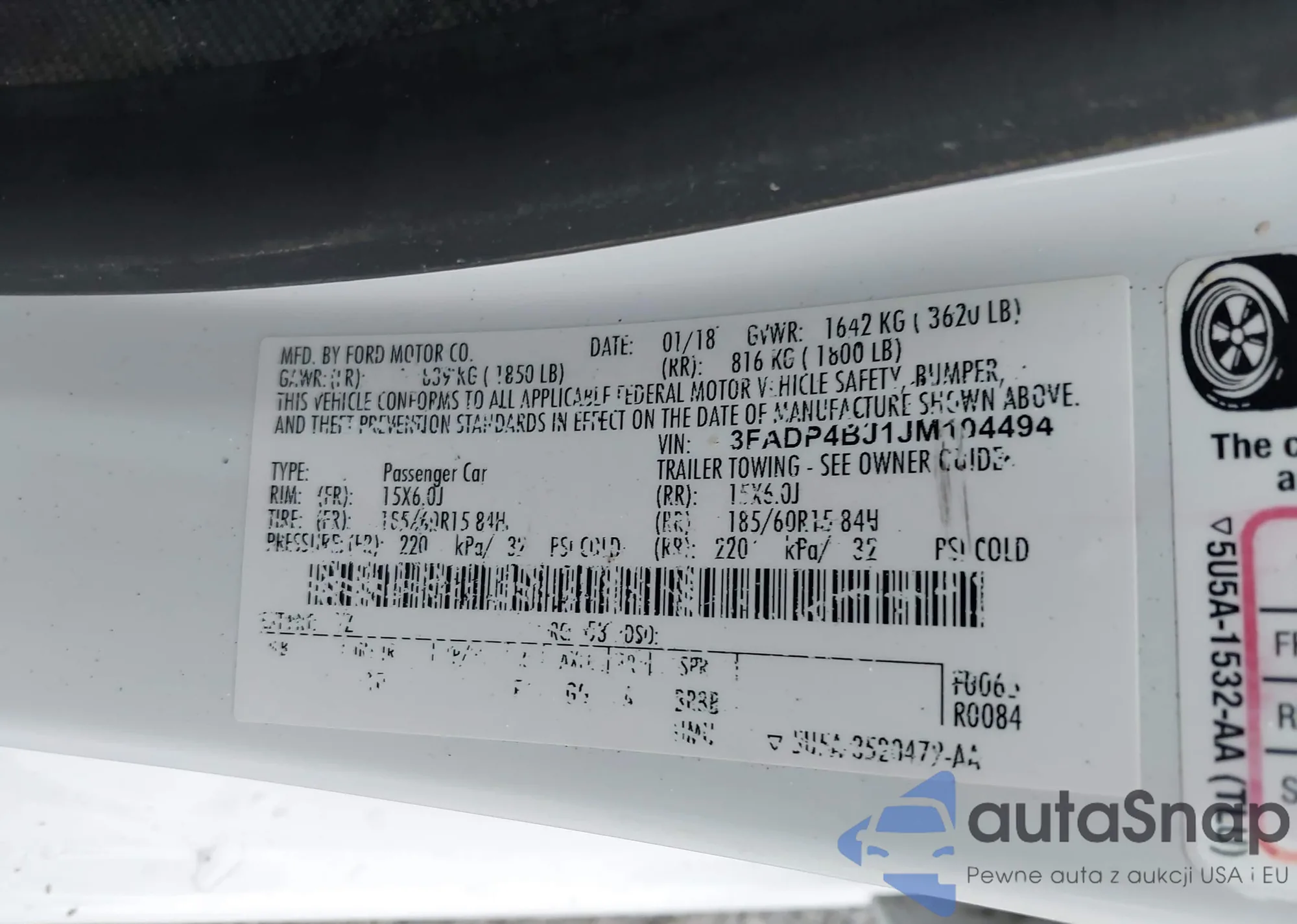 • VIN 3FADP4BJ1JM104494