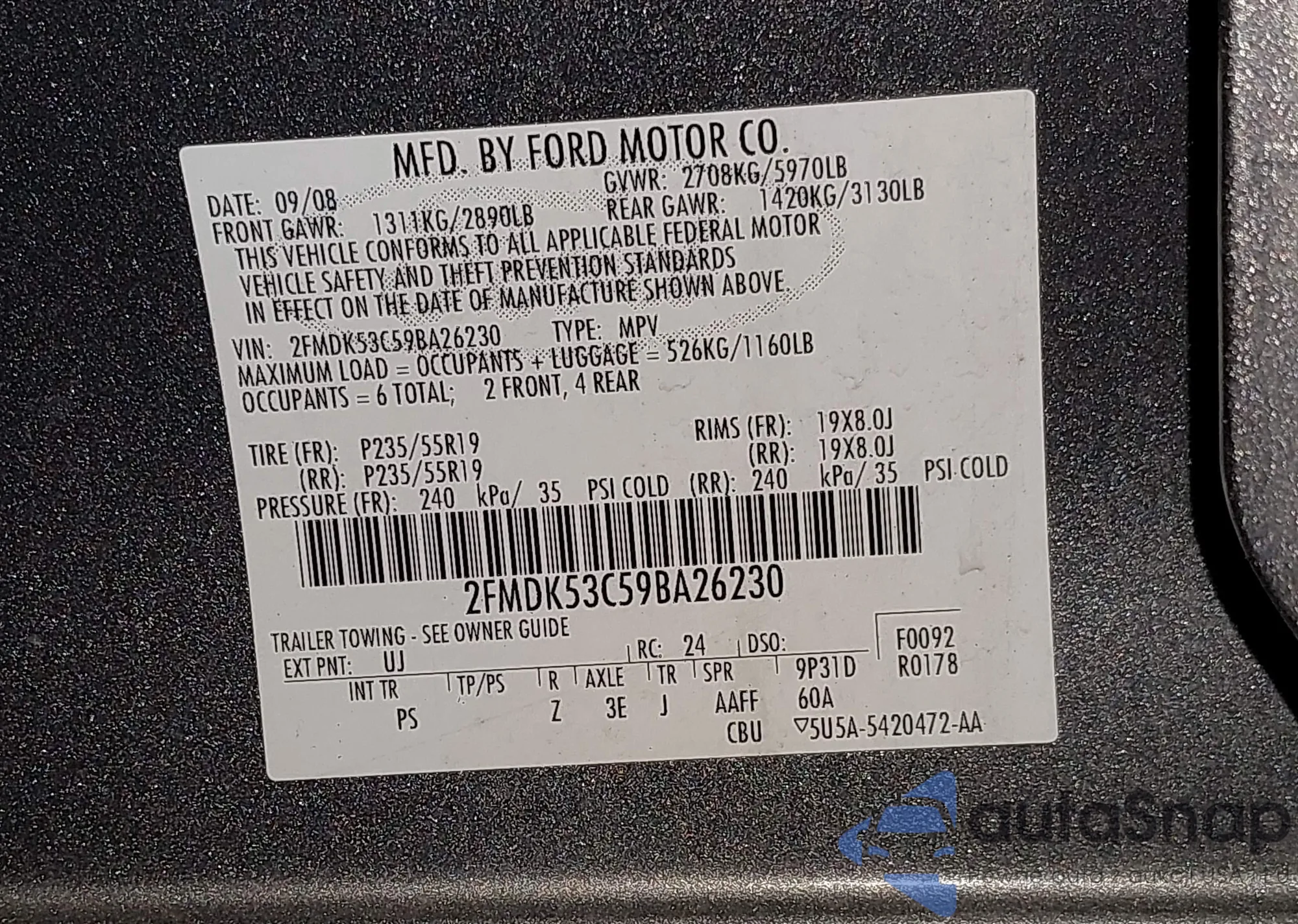 • VIN 2FMDK53C59BA26230