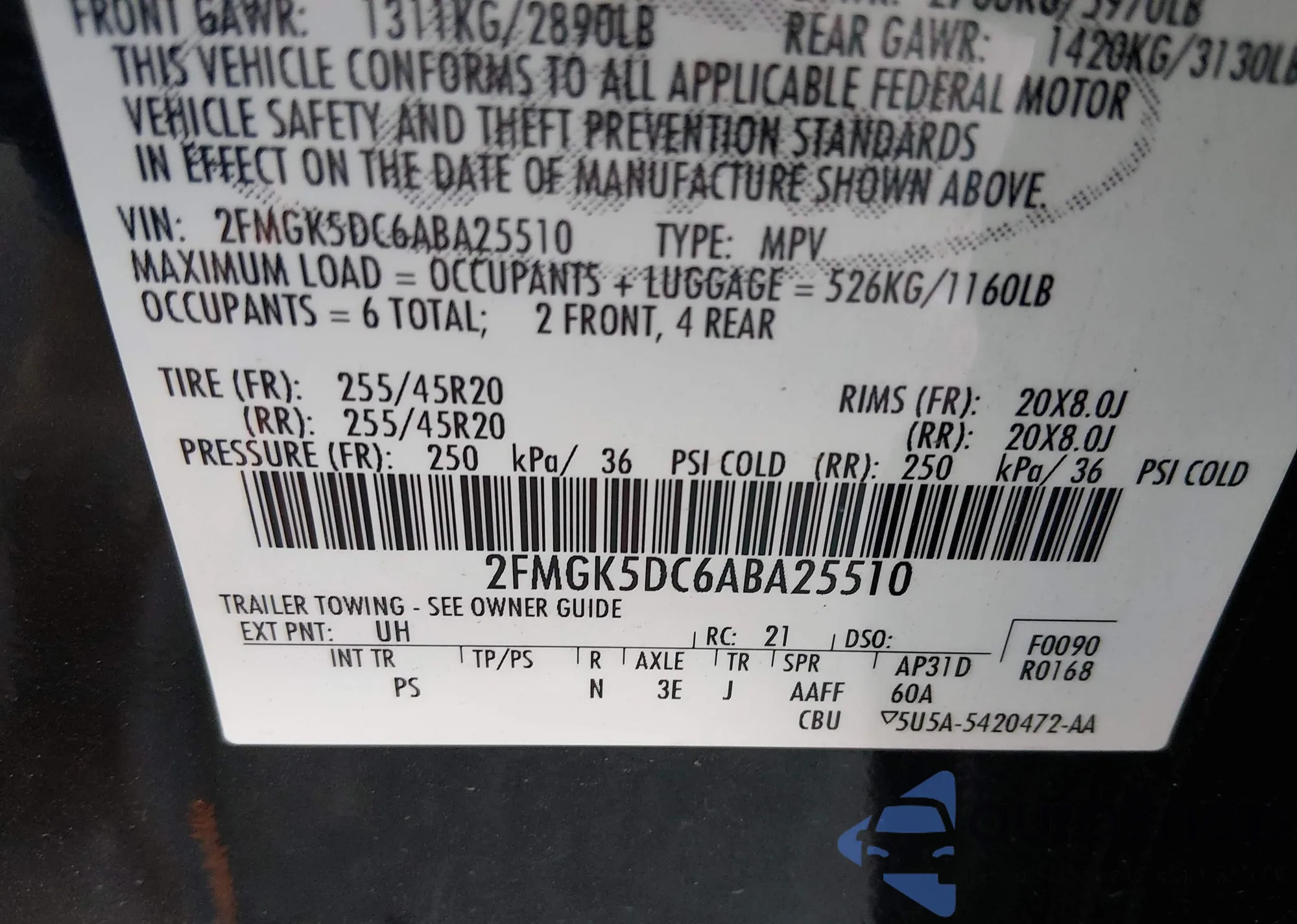 • VIN 2FMGK5DC6ABA25510