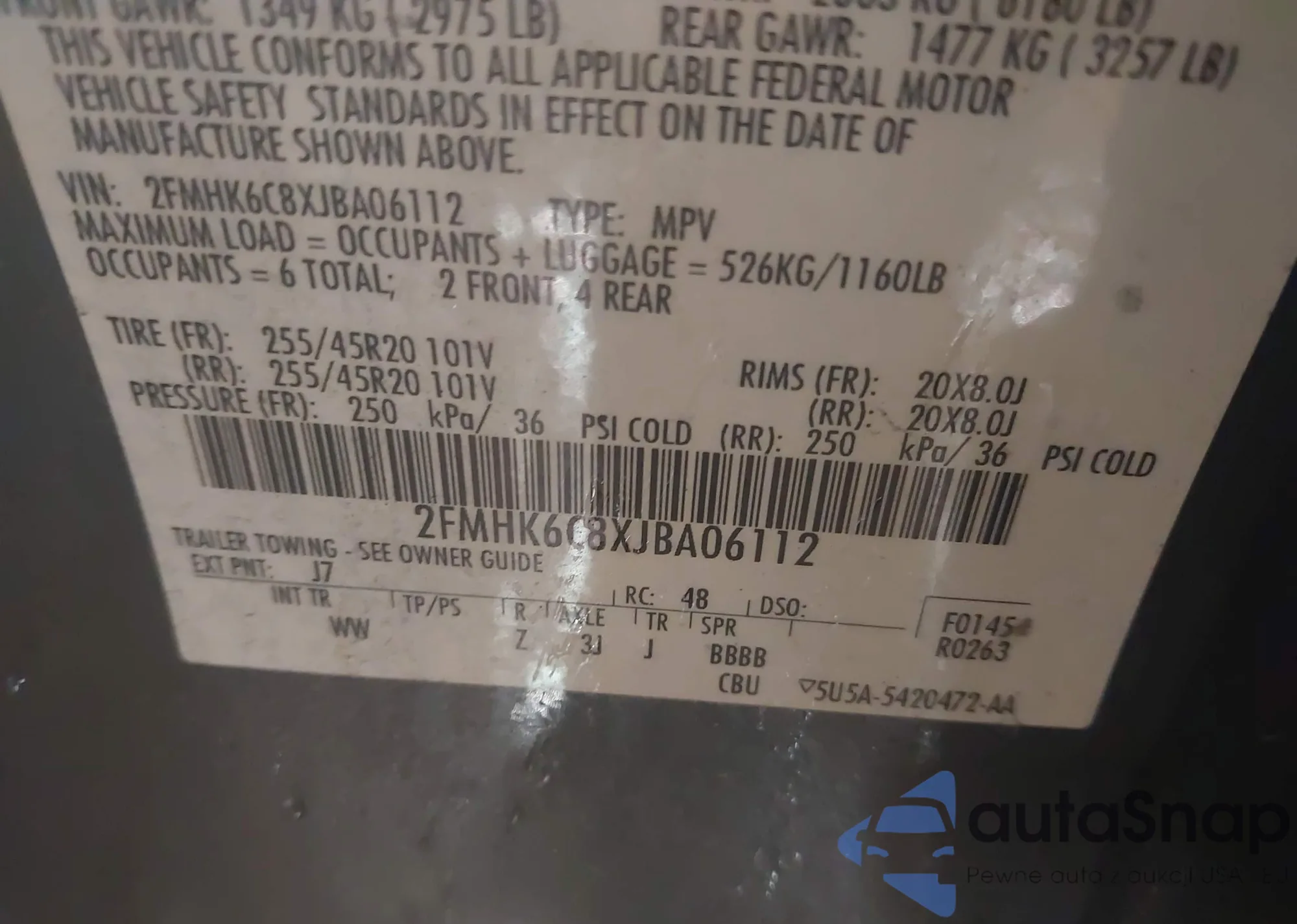 • VIN 2FMHK6C8XJBA06112