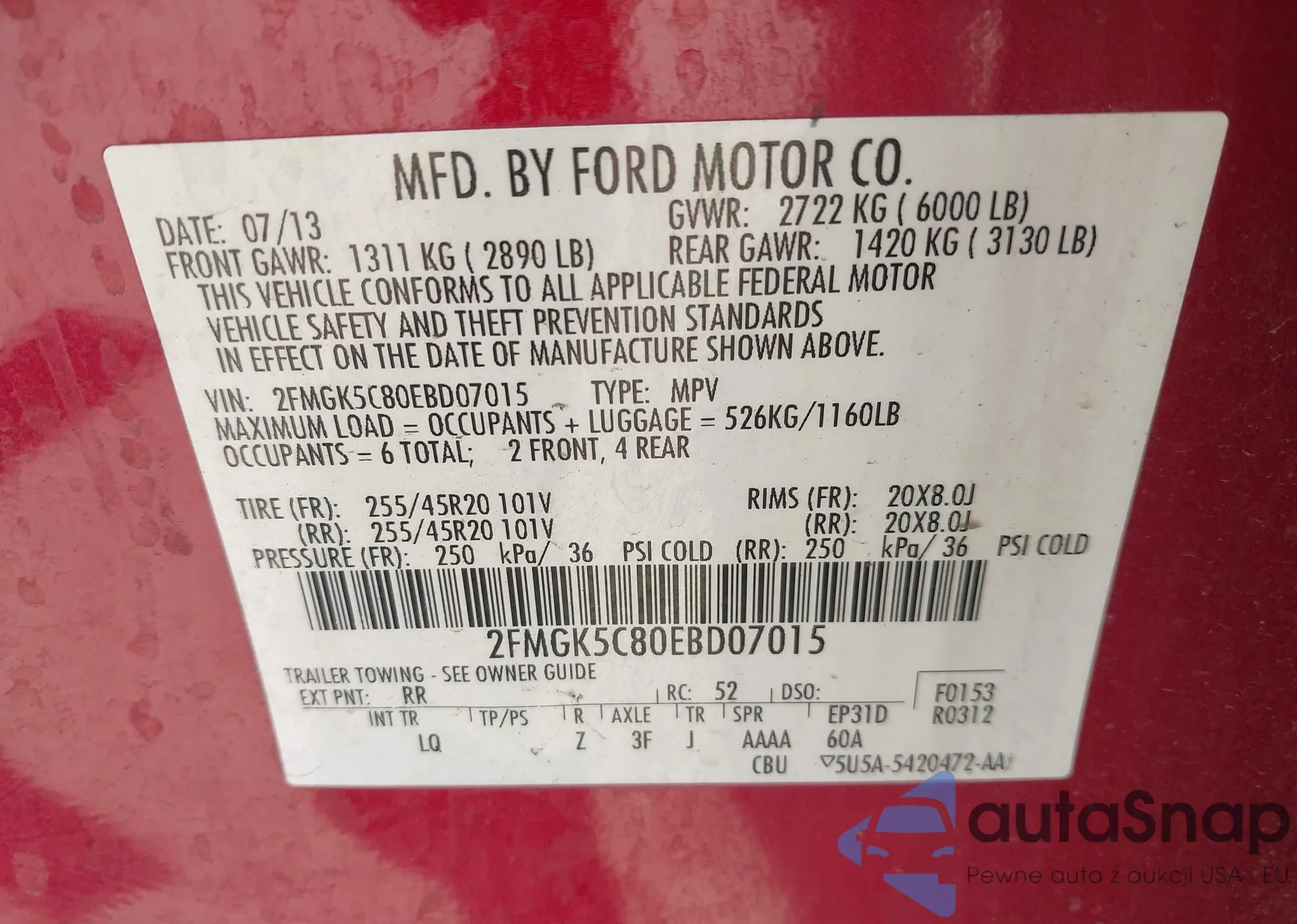 • VIN 2FMGK5C80EBD07015