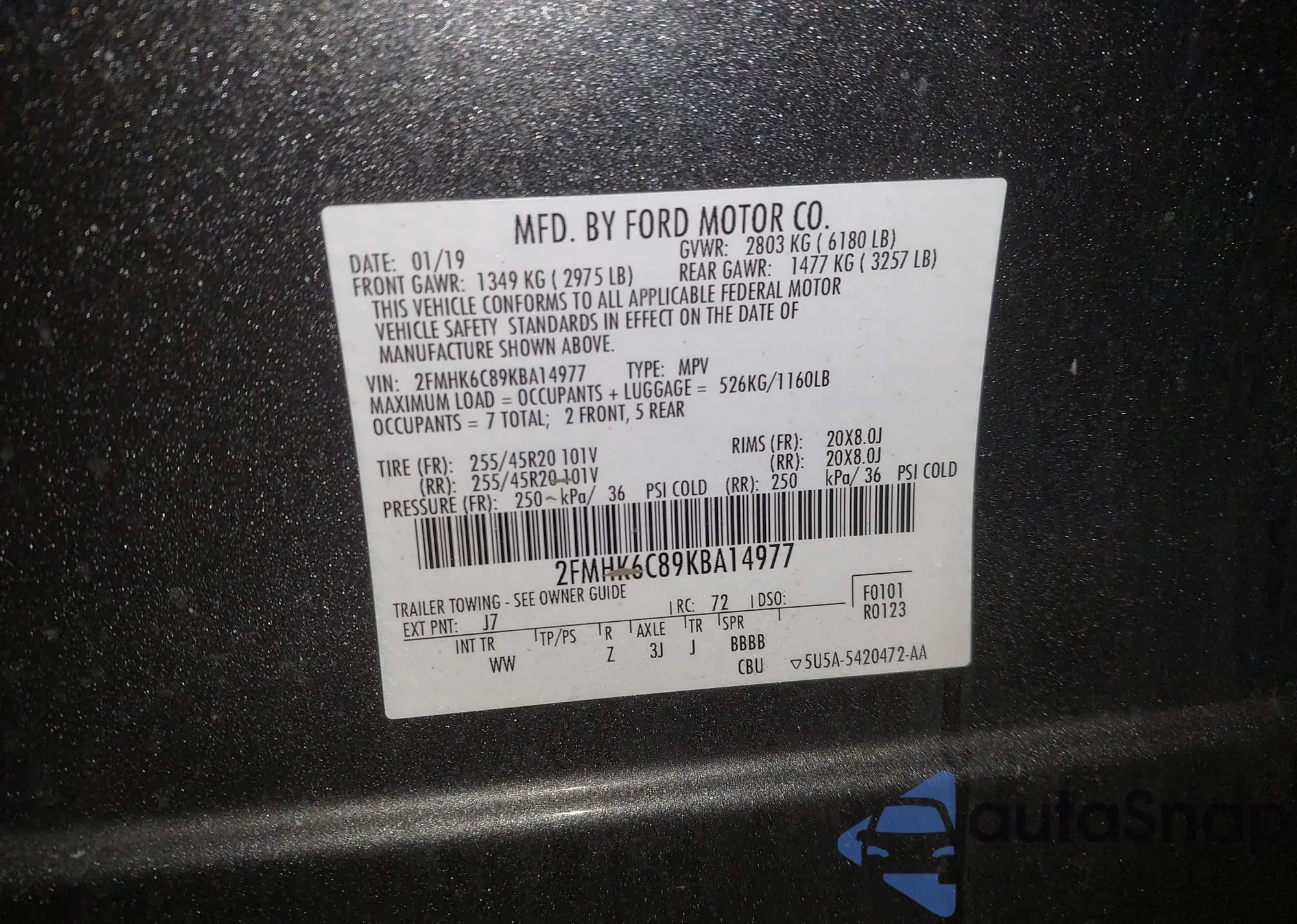 • VIN 2FMGK5B83KBA26551