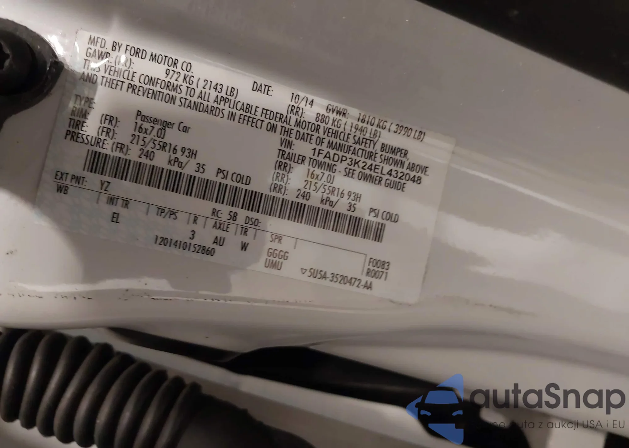 • VIN 1FADP3K24EL432048