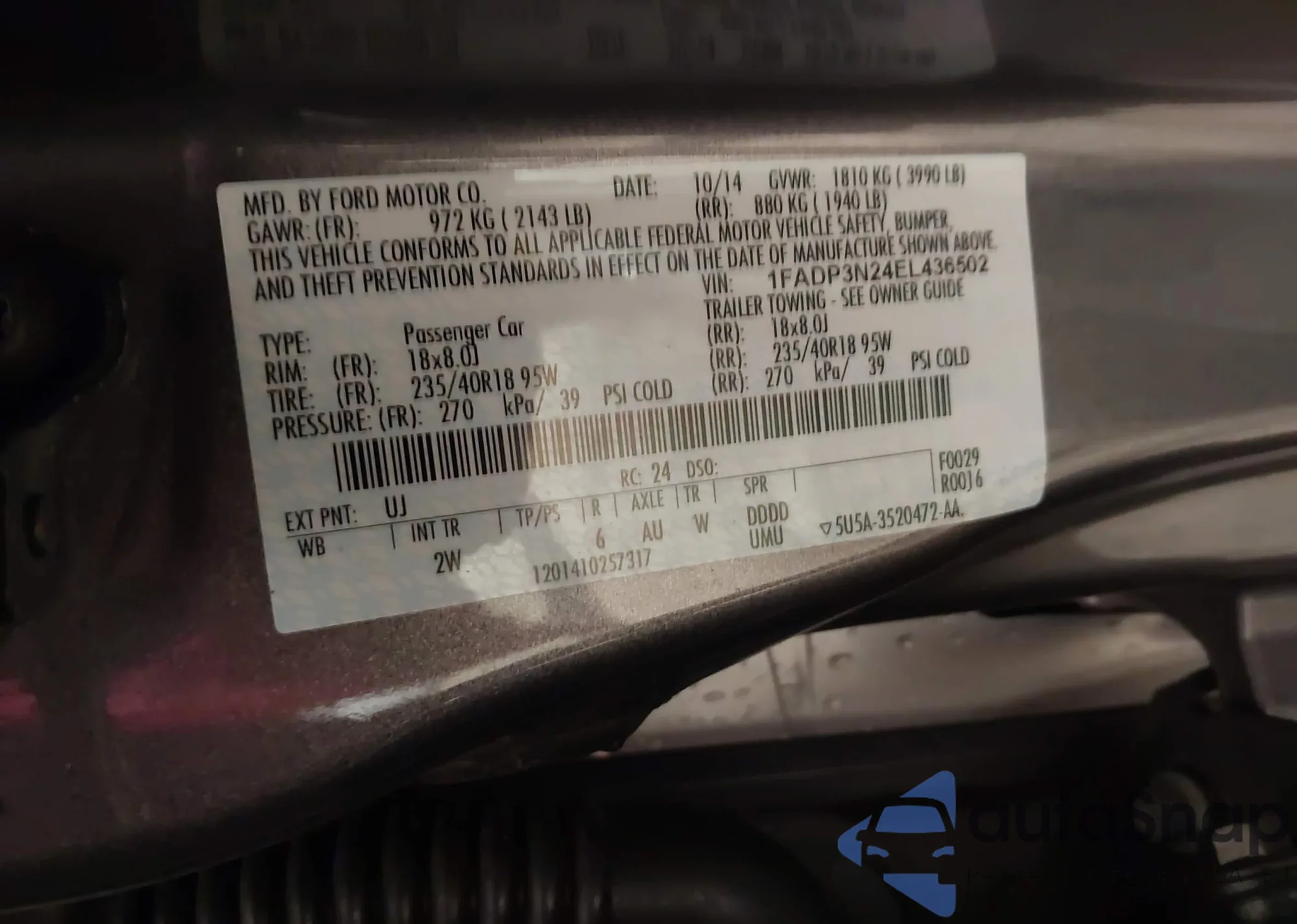• VIN 1FADP3N24EL436502
