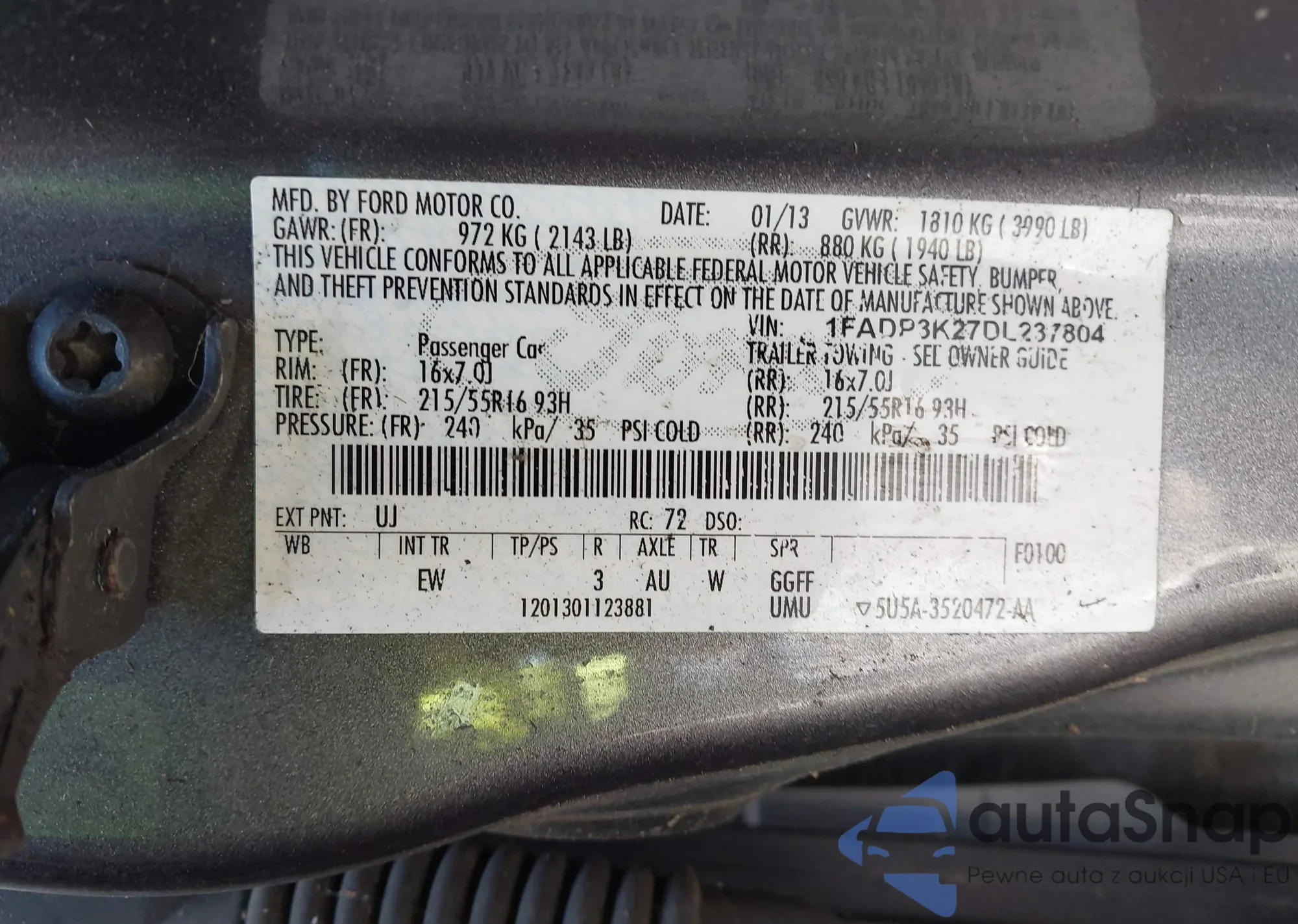 • VIN 1FADP3K27DL237804