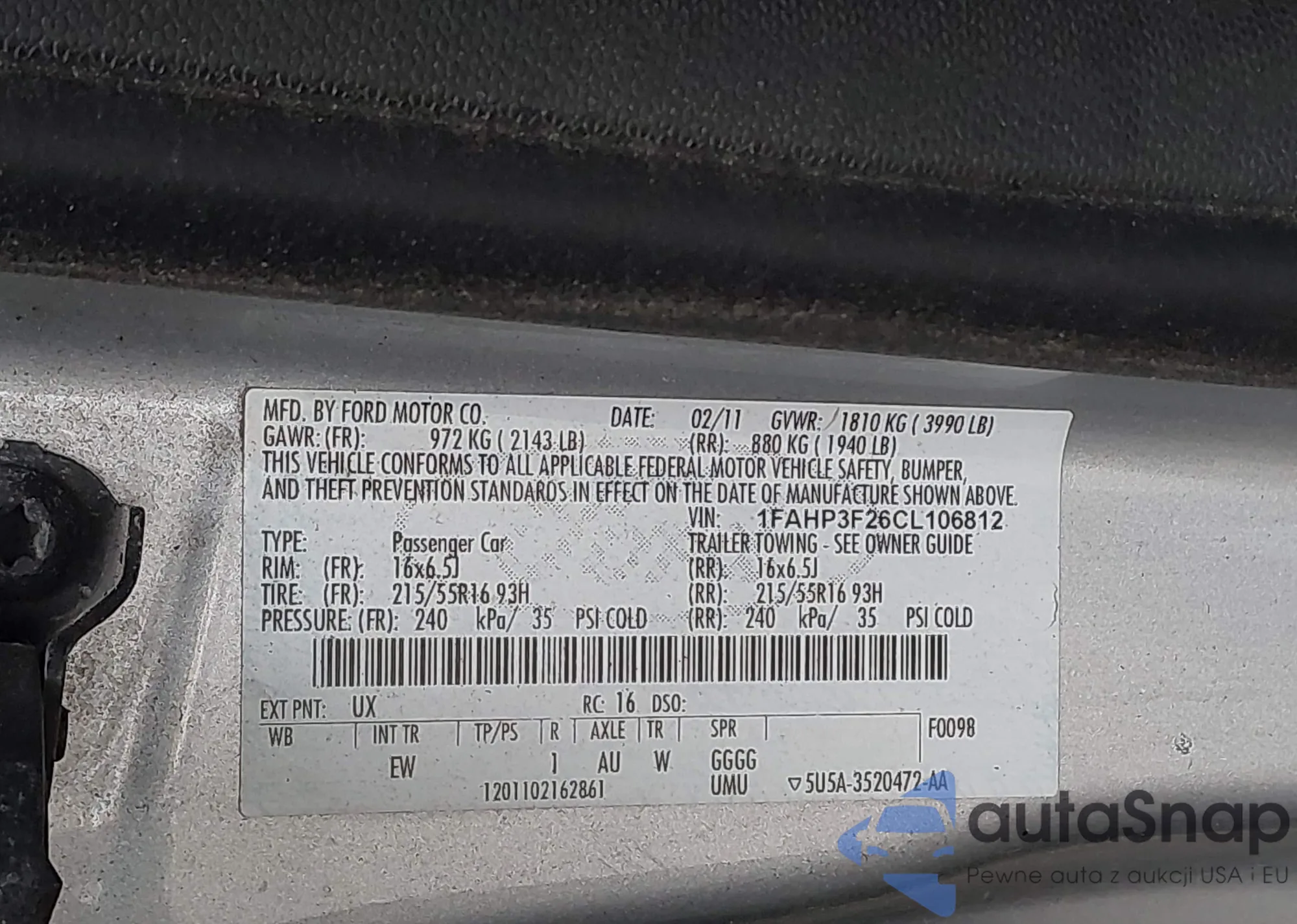 LOT: 44116145 VIN: 1FAHP3F26CL106812
