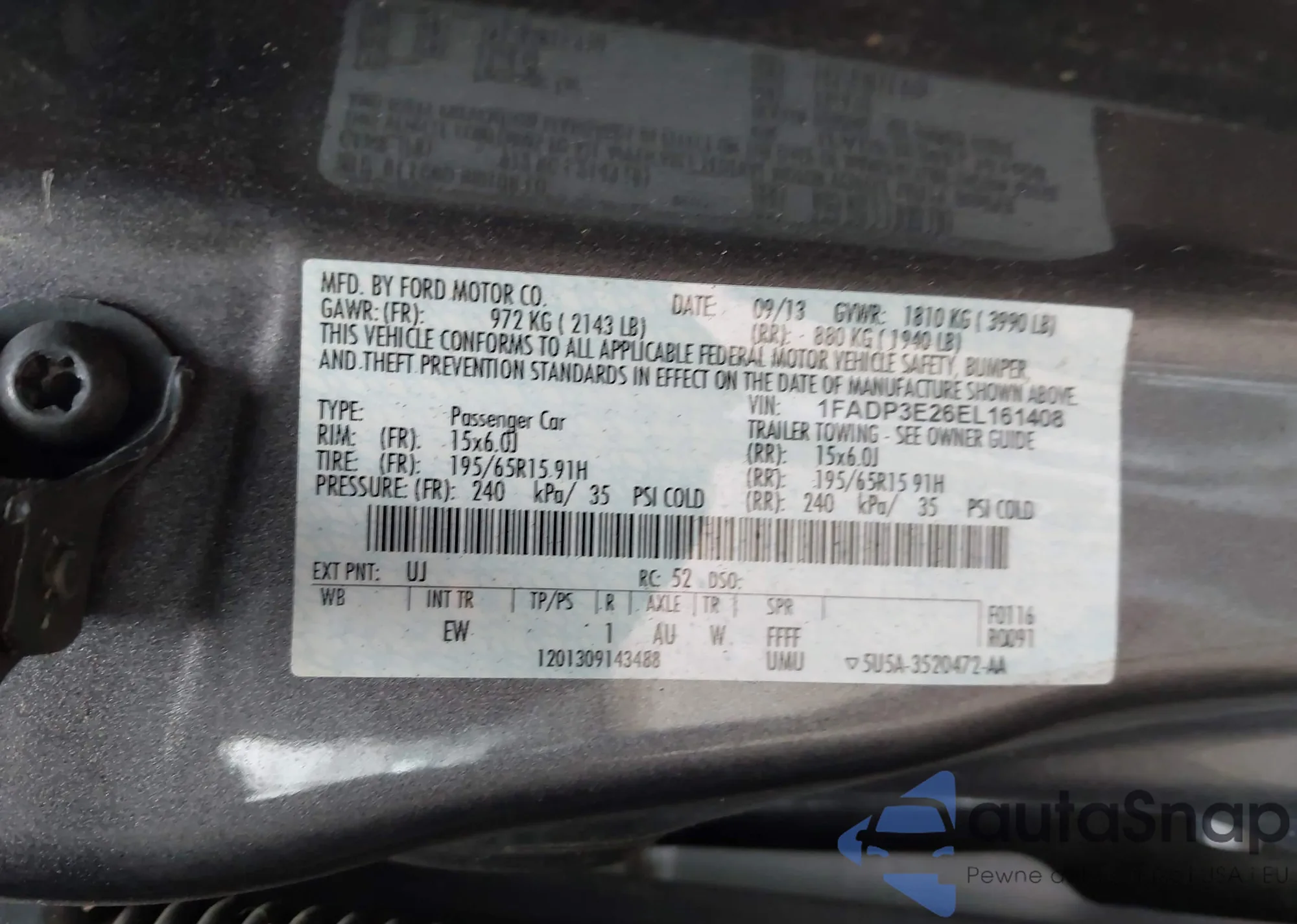 LOT: 44144877 VIN: 1FADP3E26EL161408