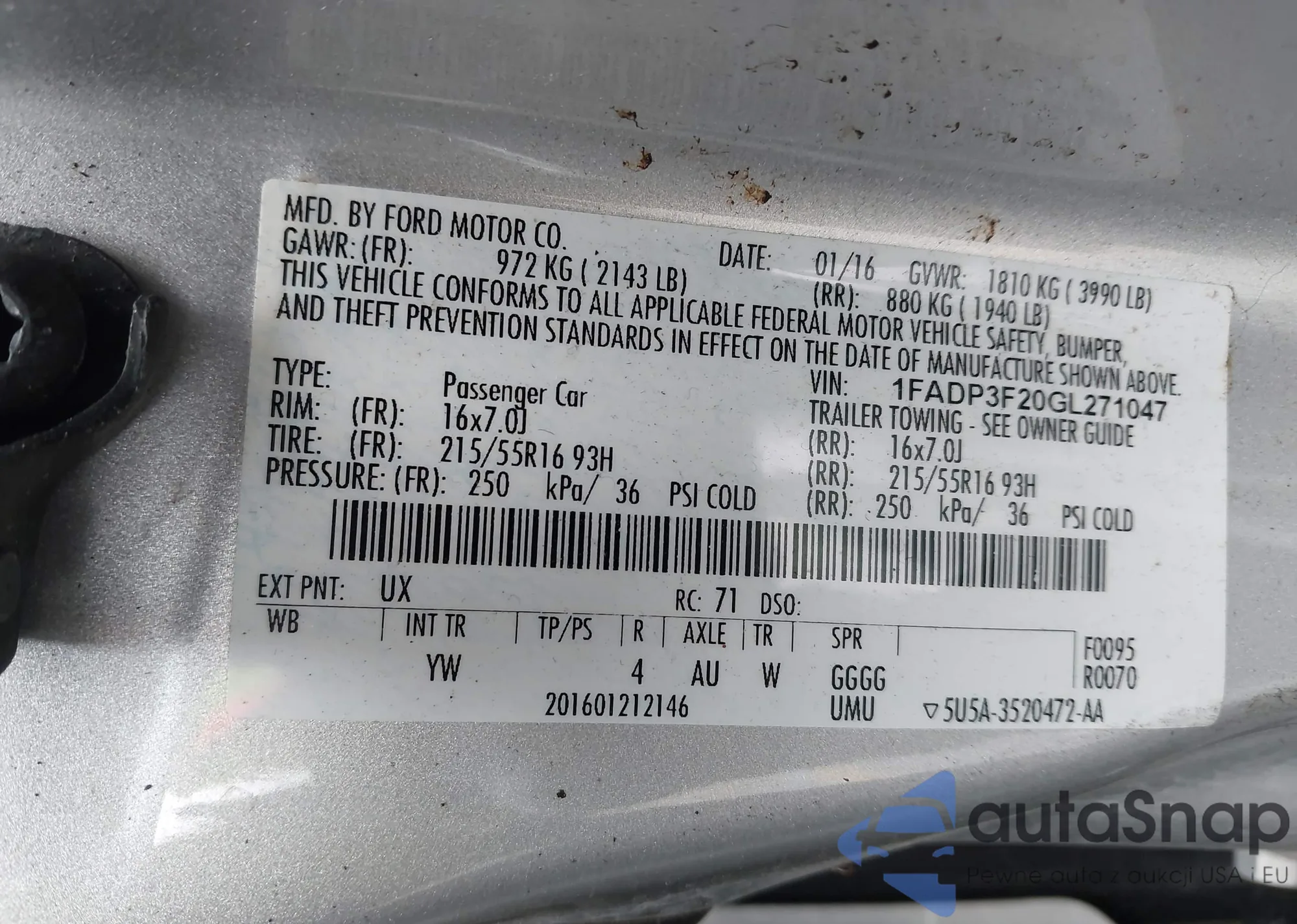 LOT: 44154641 VIN: 1FADP3F20GL271047
