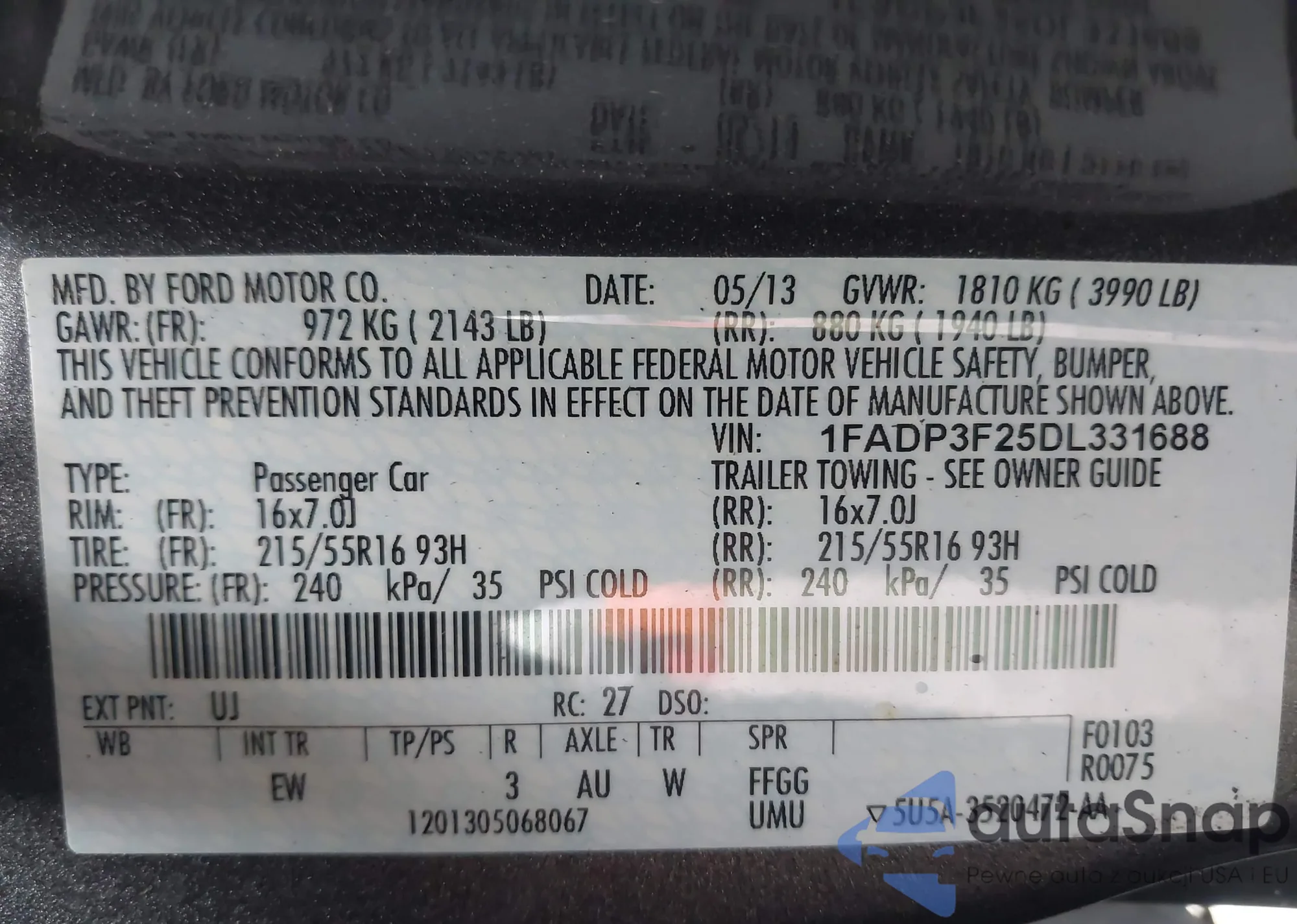 • VIN 1FADP3F25DL331688
