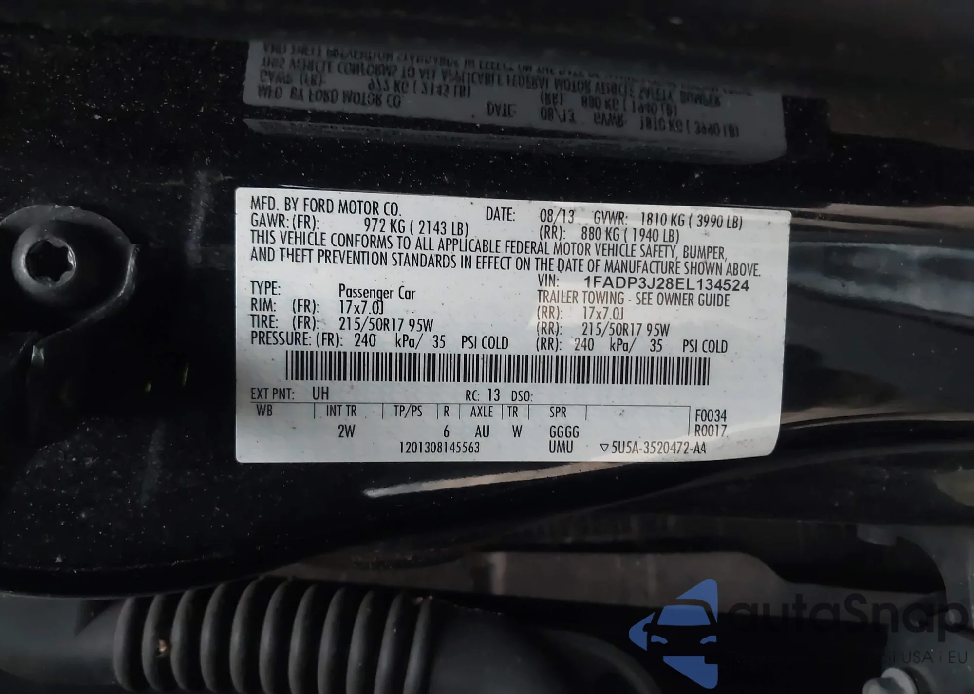 • VIN 1FADP3K27EL338679