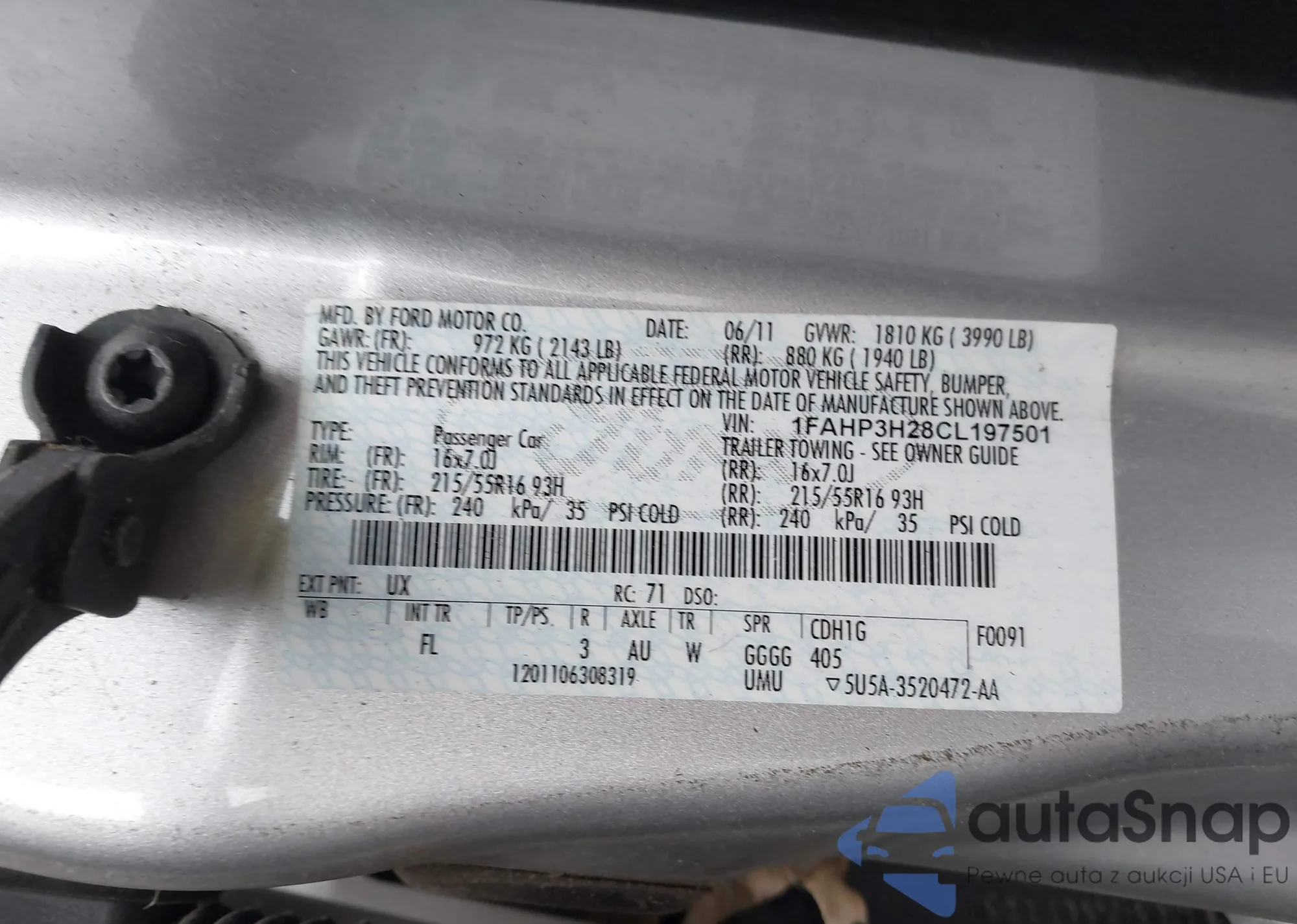 LOT: 43892807 VIN: 1FAHP3H28CL197501