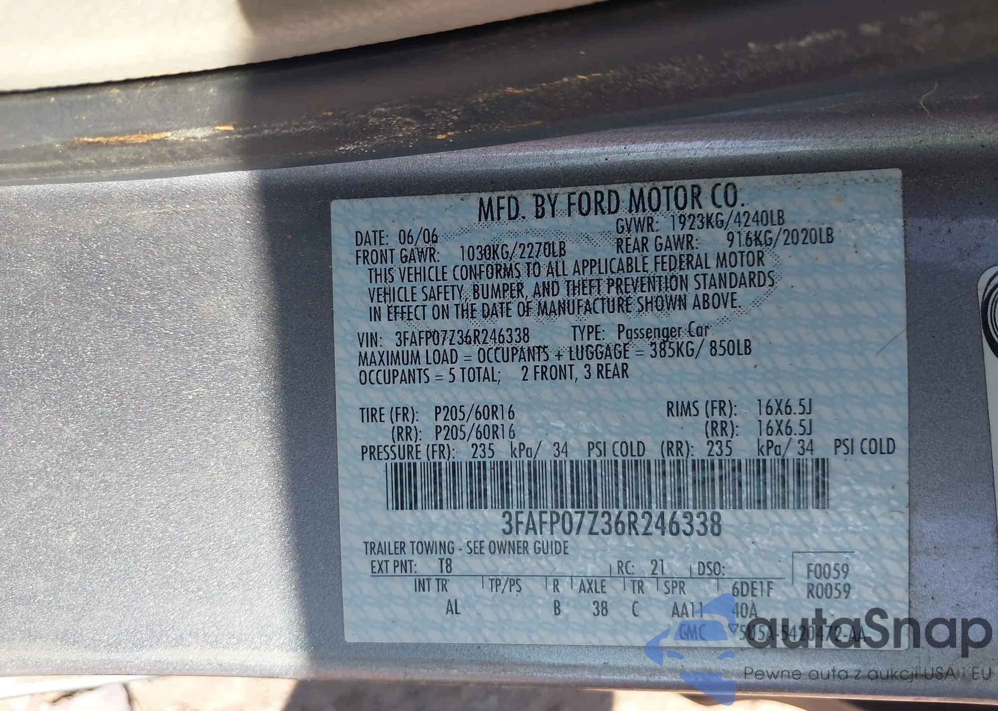 • VIN 3FAFP07Z36R246338