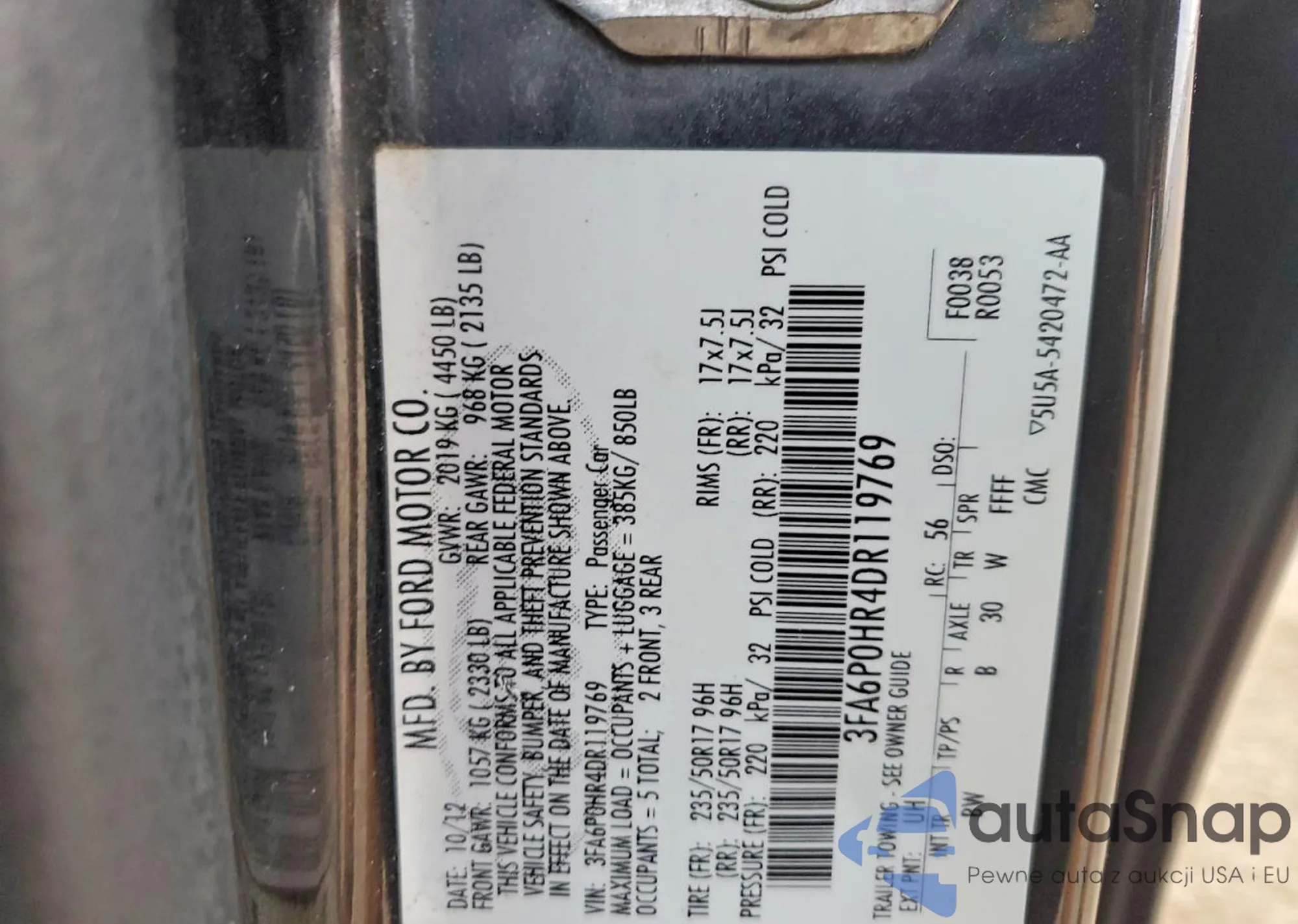 • VIN 3FA6P0HR4DR119769