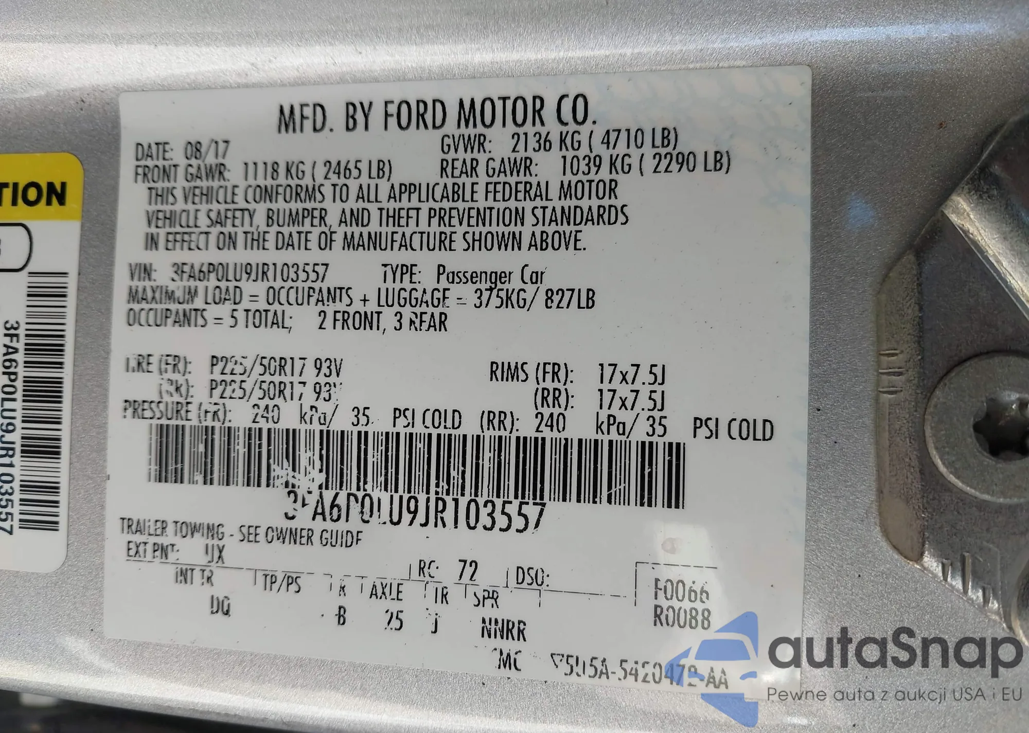 • VIN 3FA6P0LU9JR103557