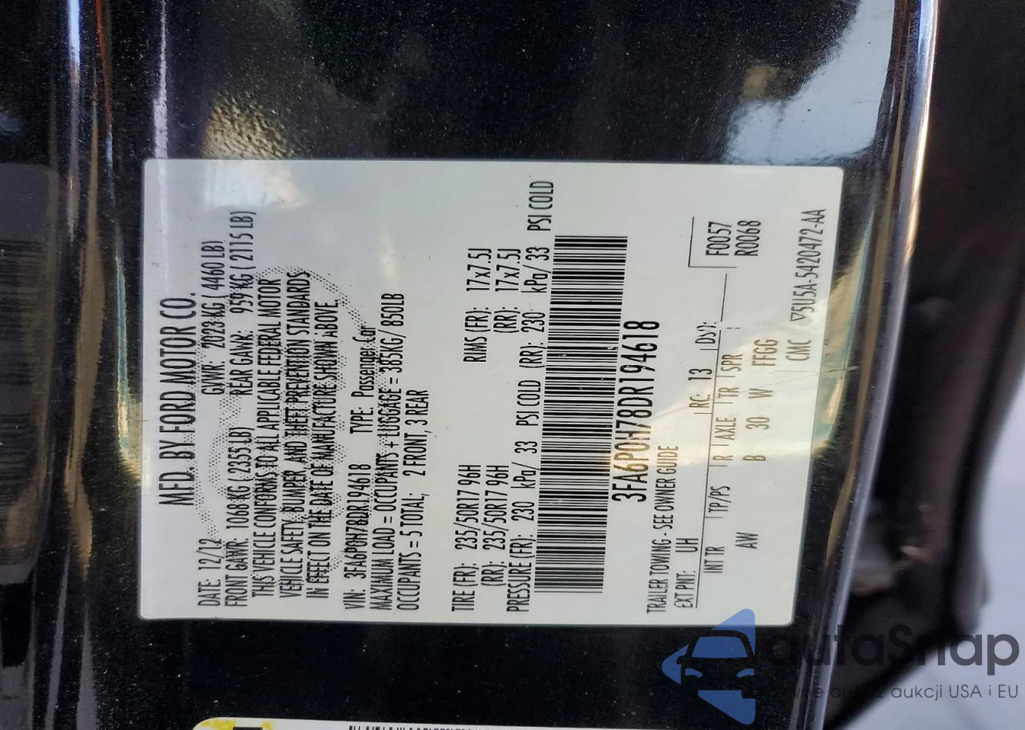 • VIN 3FA6P0H78DR194618