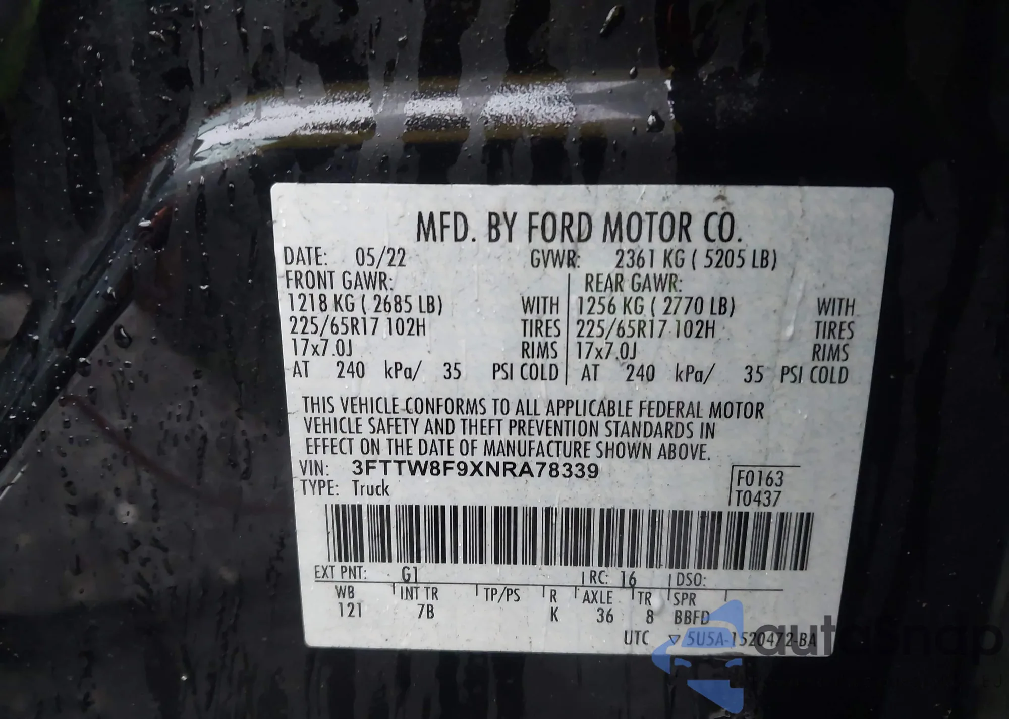 • VIN 3FTTW8F9XNRA78339