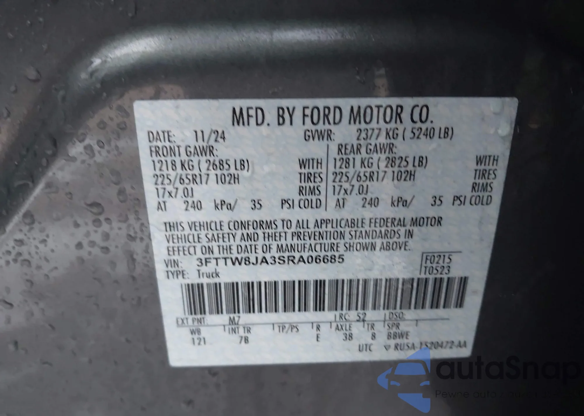 • VIN 3FTTW8JA3SRA06685