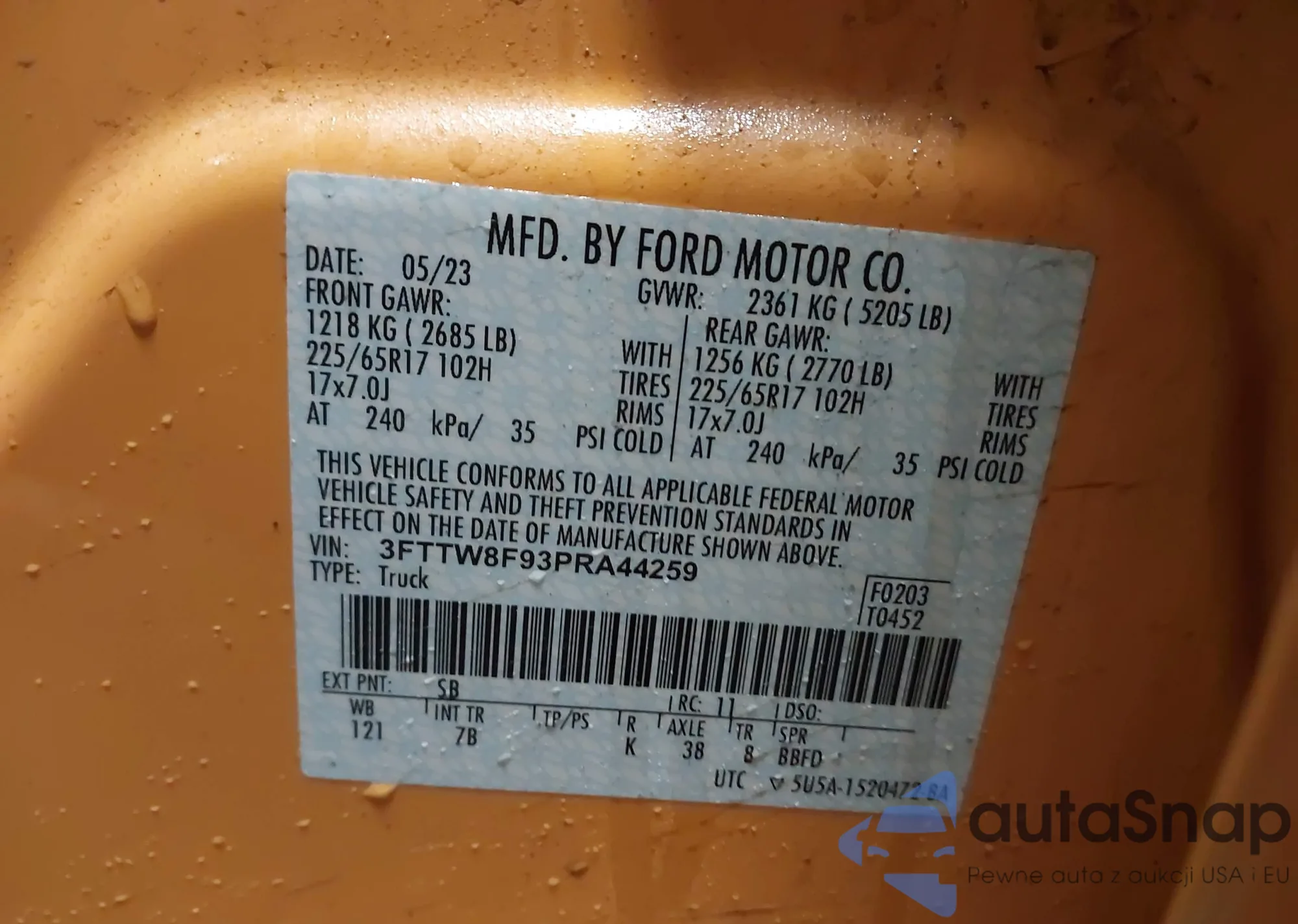 LOT: 44136105 VIN: 3FTTW8F93PRA44259