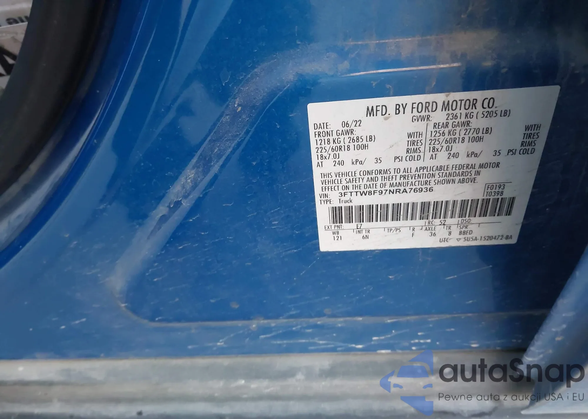 LOT: 44184572 VIN: 3FTTW8F97NRA76936