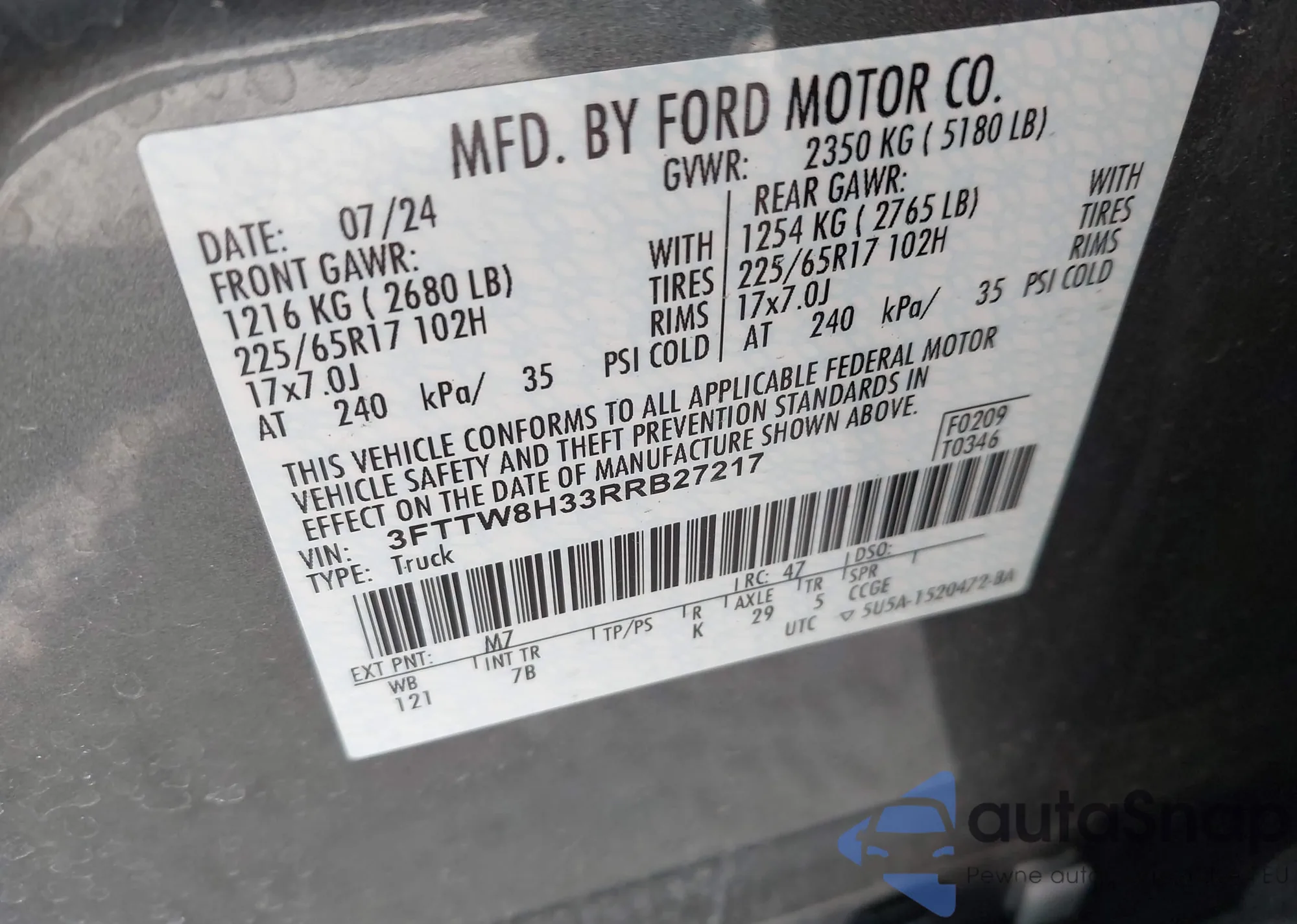 • VIN 3FTTW8H33RRB27217