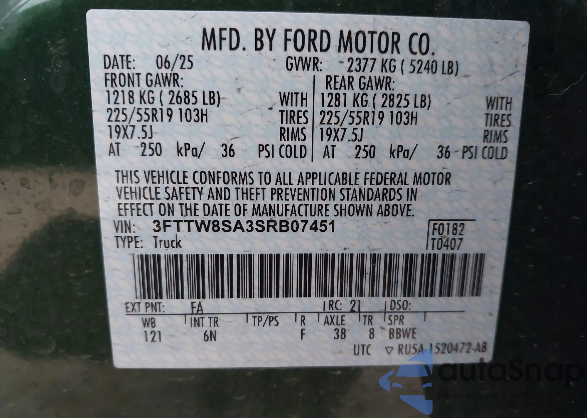 • VIN 3FTTW8SA3SRB07451