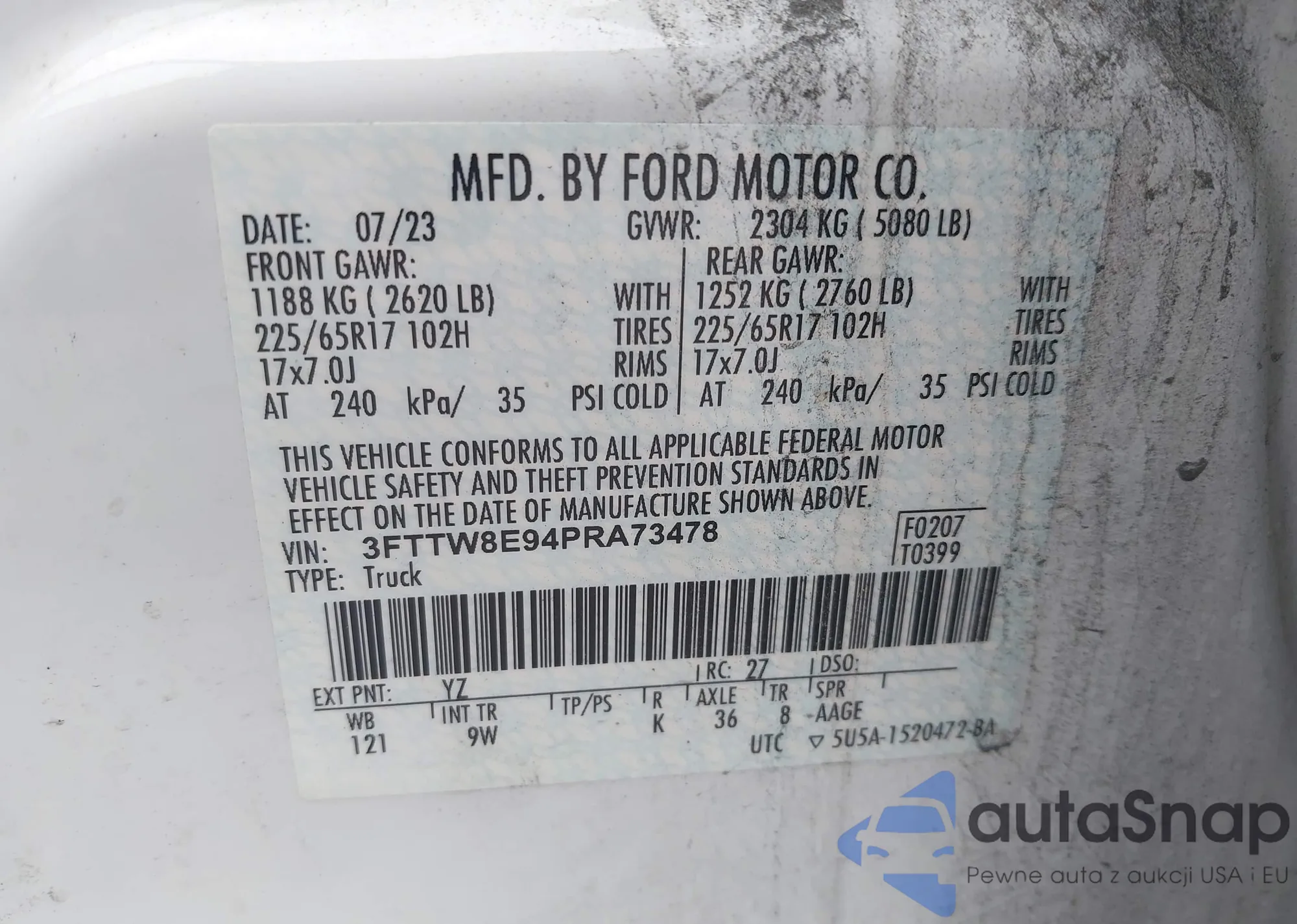 LOT: 43672328 VIN: 3FTTW8E36PRA91248