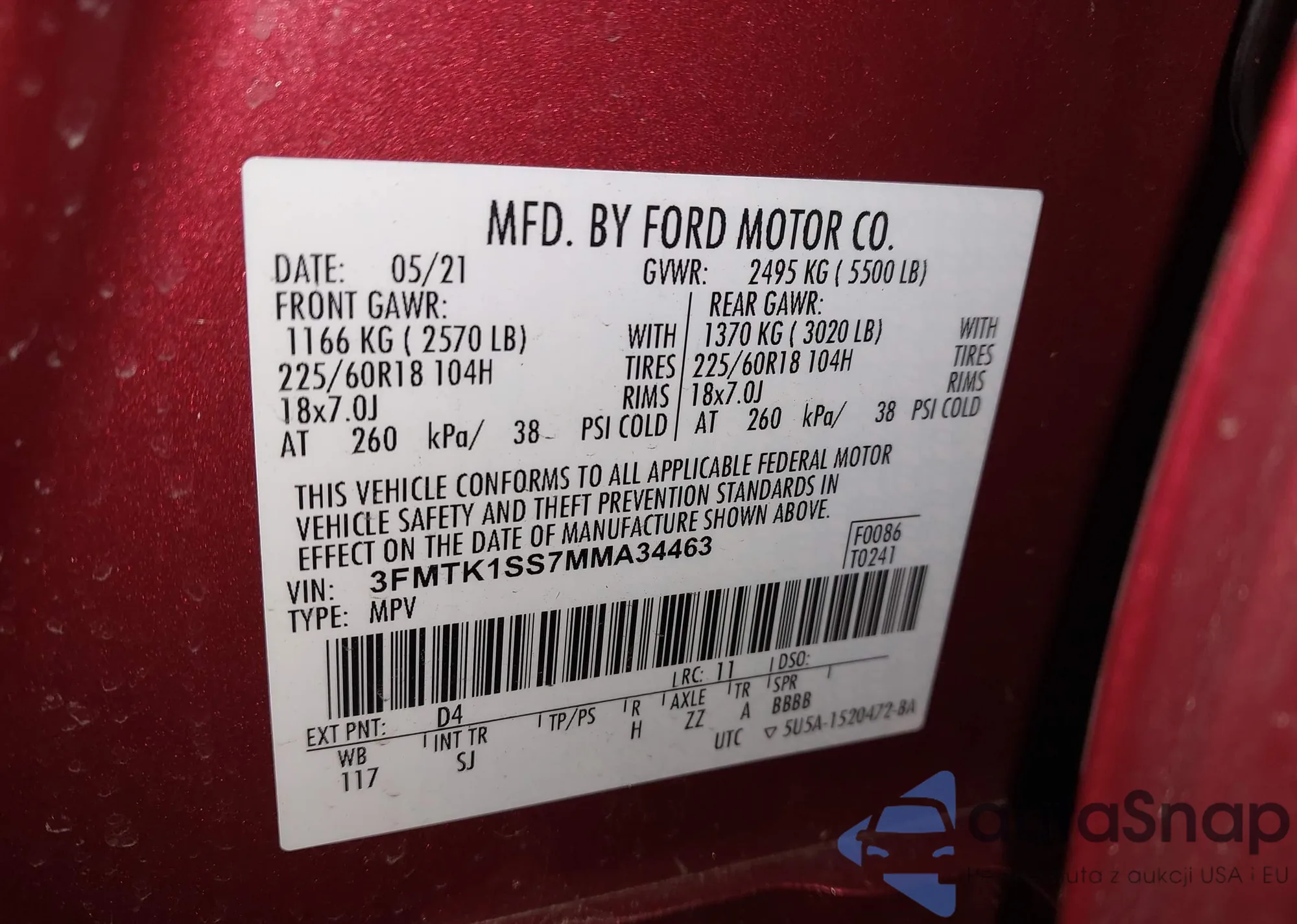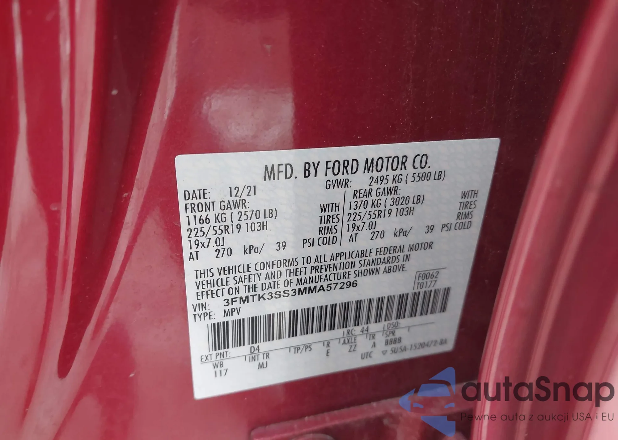 LOT: 95003515 VIN: 3FMTK3SU6MMA36881