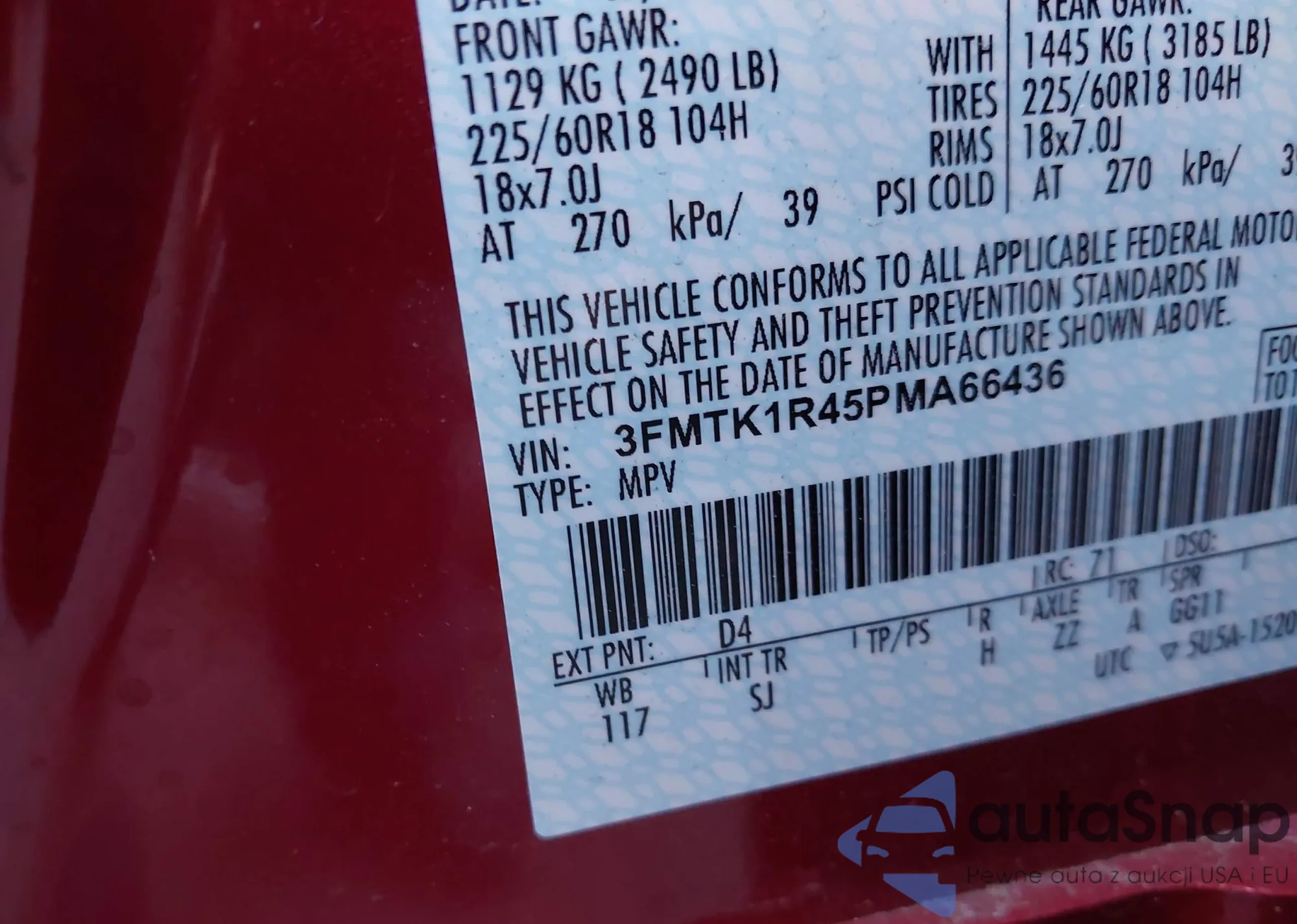 • VIN 3FMTK1R45PMA66436