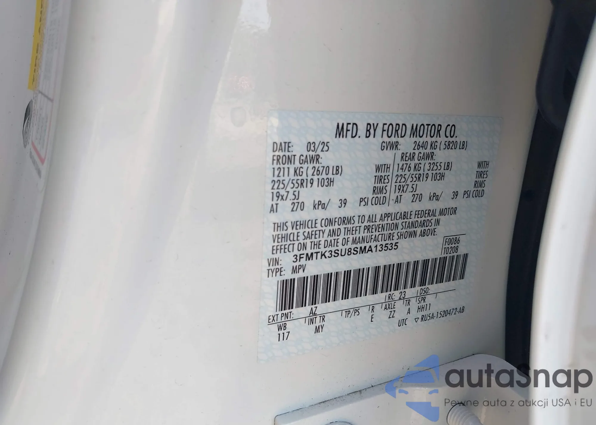 • VIN 3FMTK3SU8SMA13535