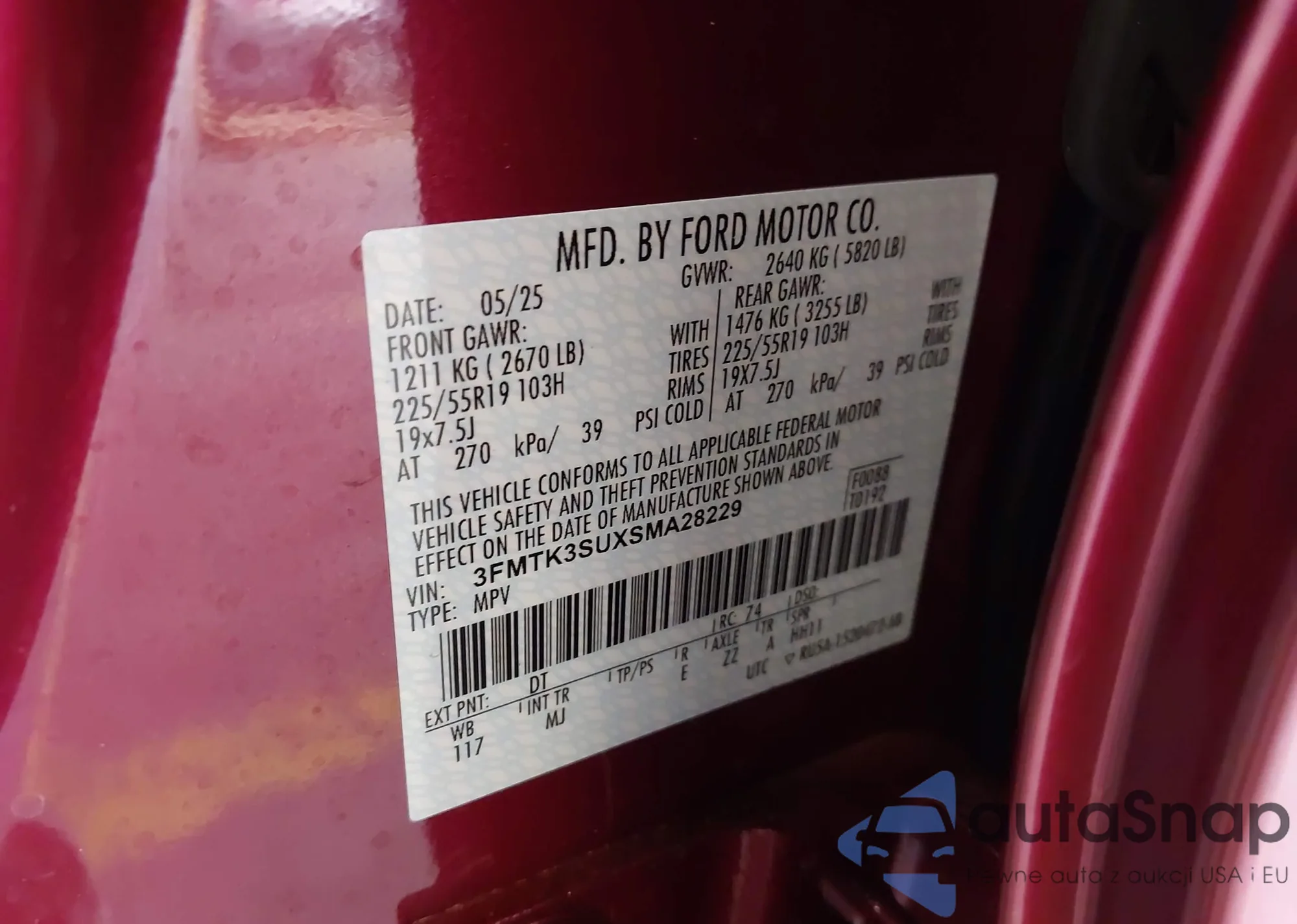 • VIN 3FMTK3SUXSMA28229