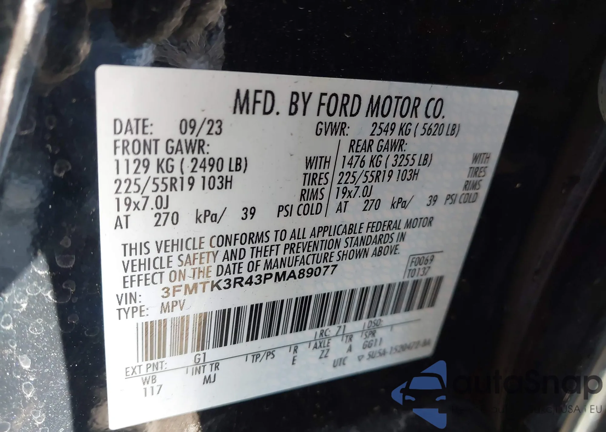 • VIN 3FMTK3R43PMA89077
