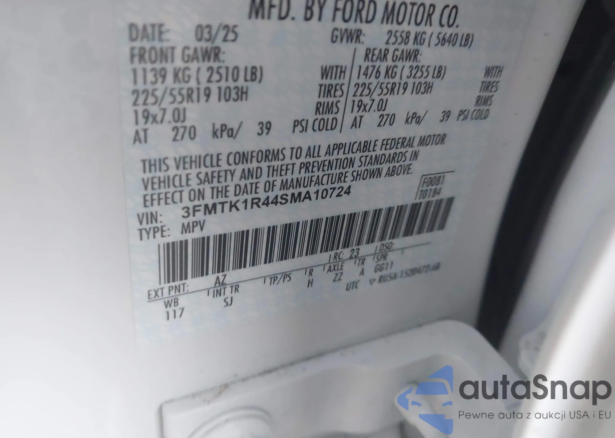 • VIN 3FMTK3SU8MMA03249