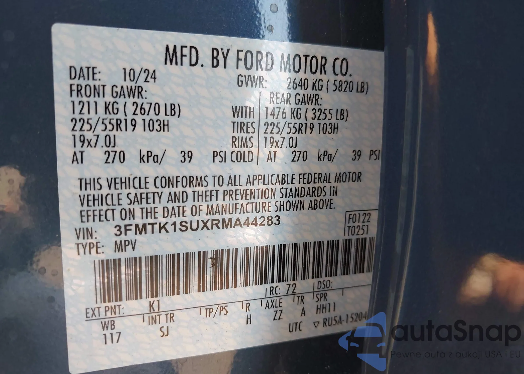 • VIN 3FMTK1SUXRMA44283