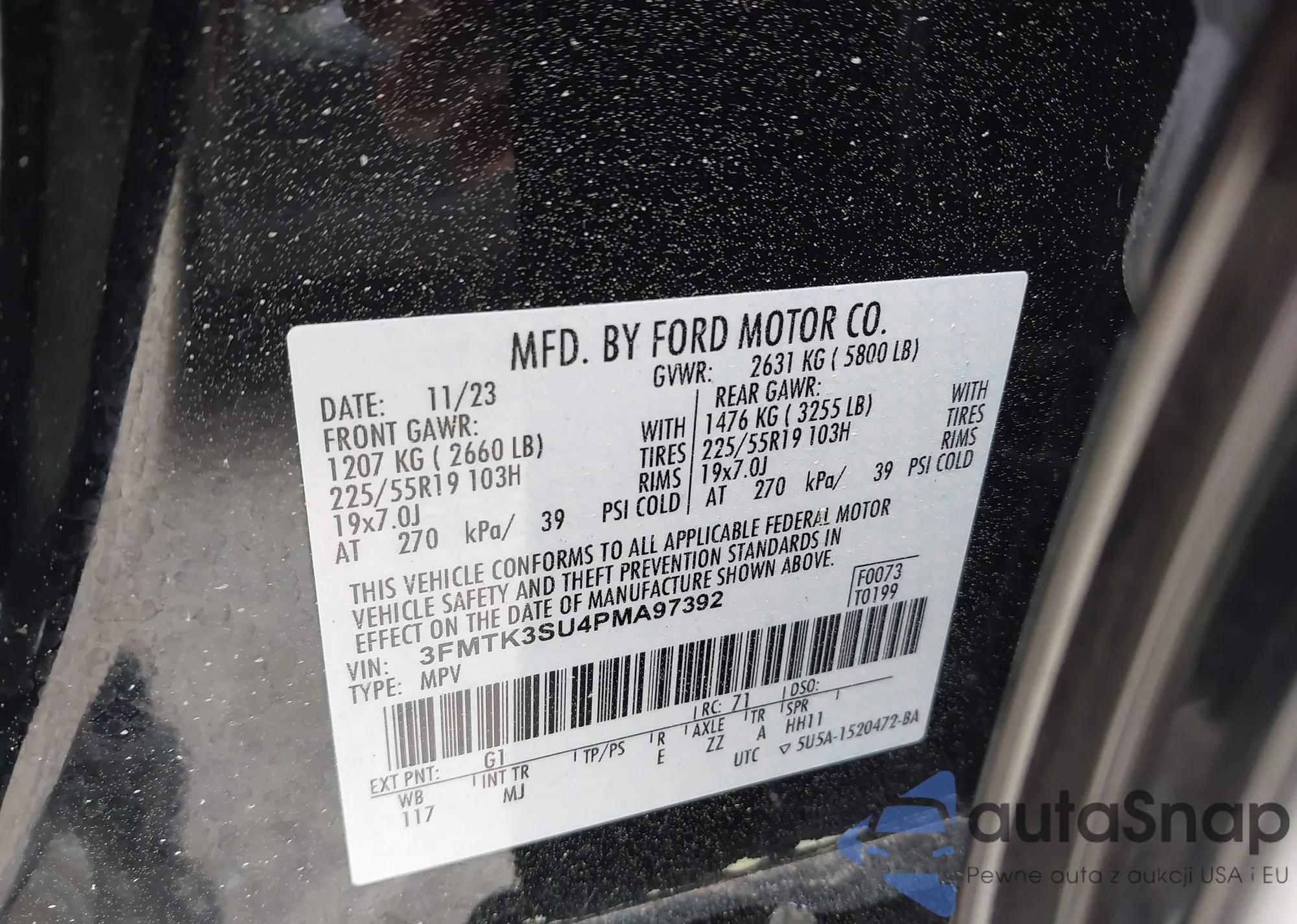 • VIN 3FMTK3SU4PMA97392