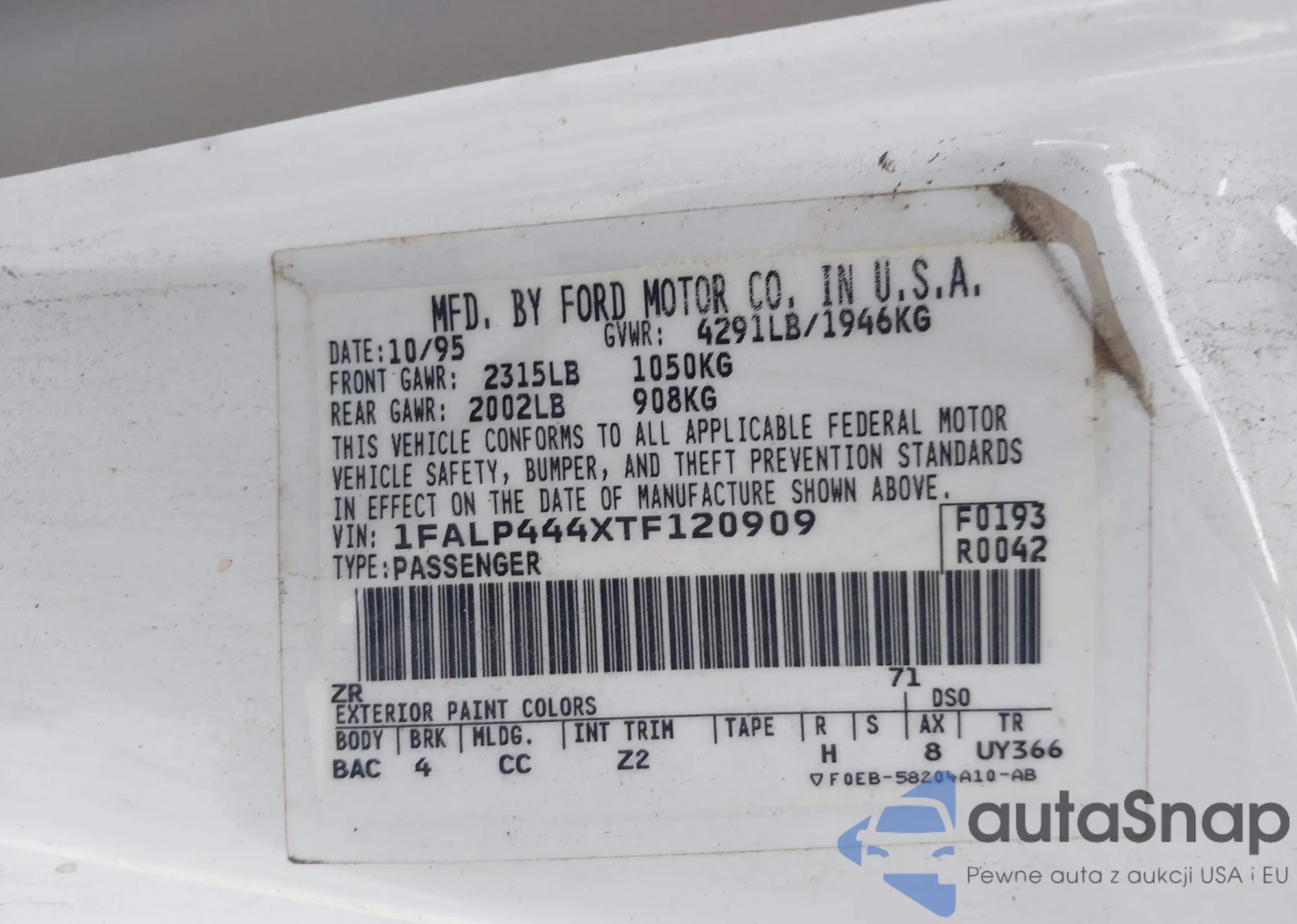 LOT: 44422523 VIN: 1FALP444XTF120909