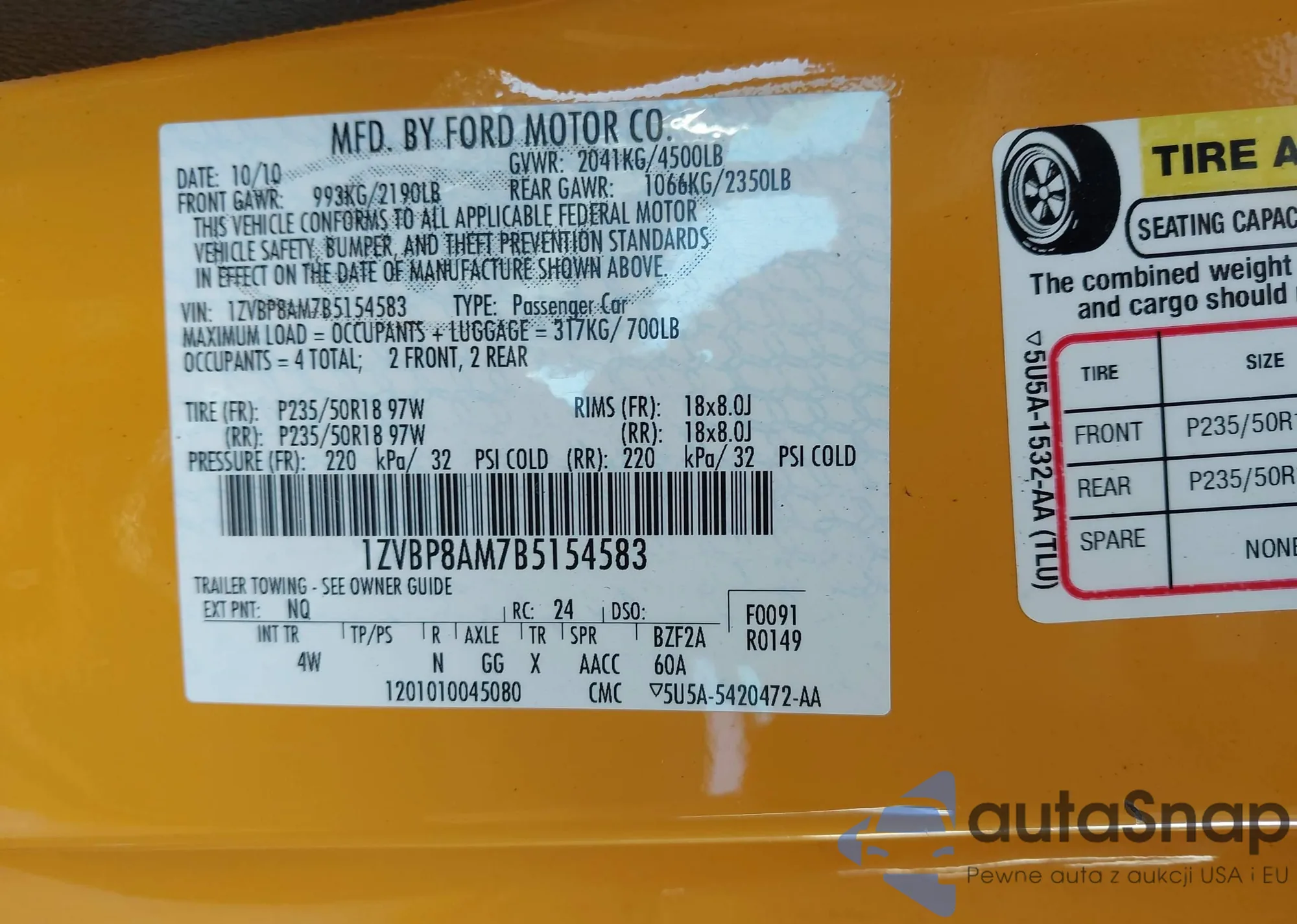 • VIN 1ZVBP8AM7B5154583