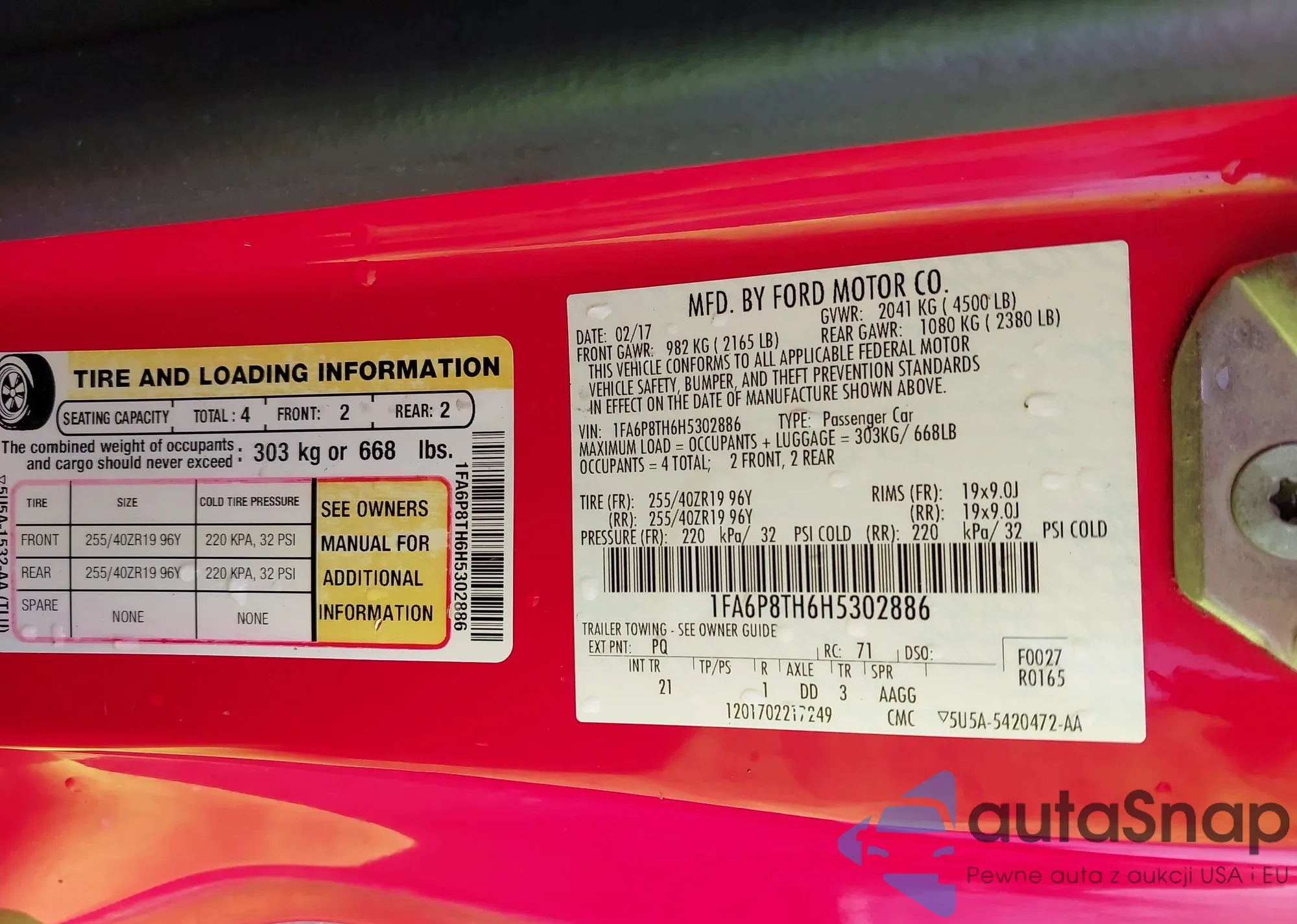 • VIN 1FA6P8TH6H5302886