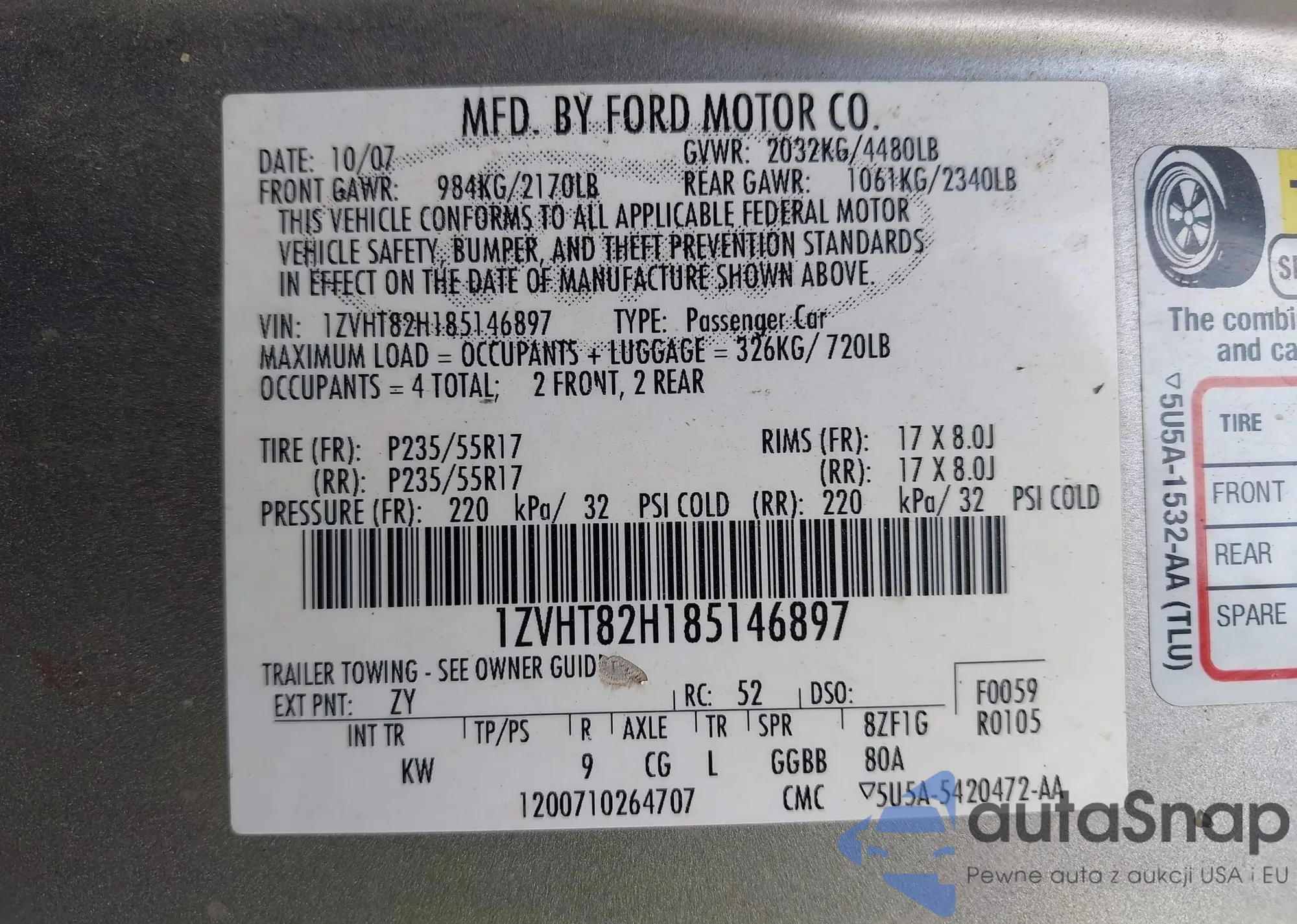 • VIN 1ZVHT82H185146897