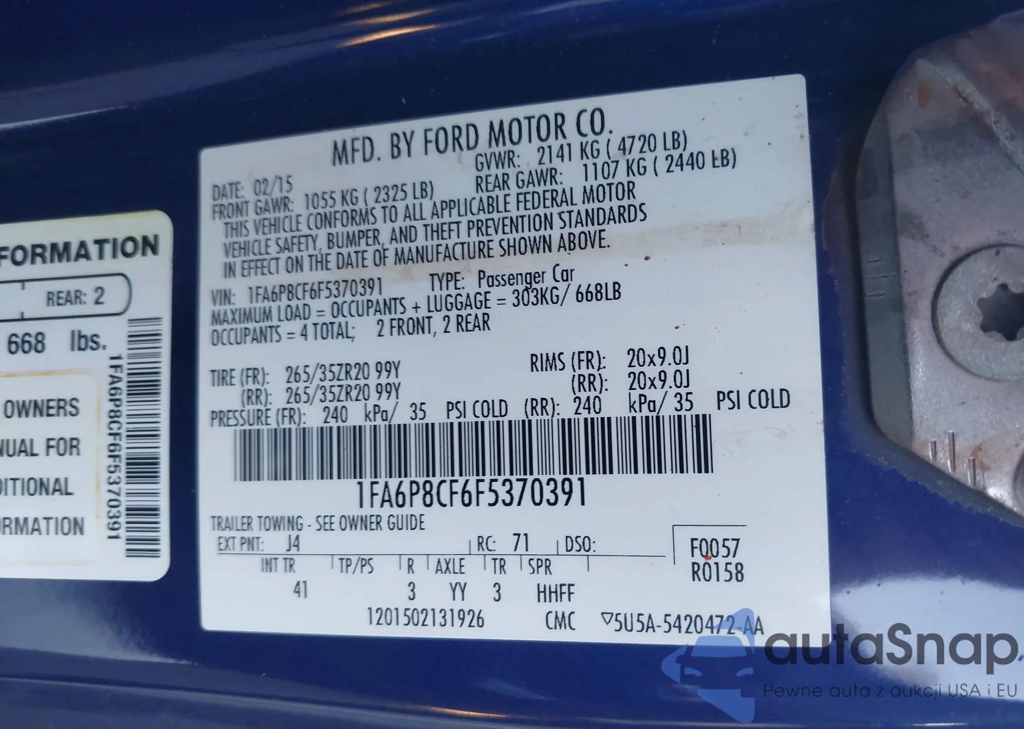 • VIN 1FA6P8CF6F5370391