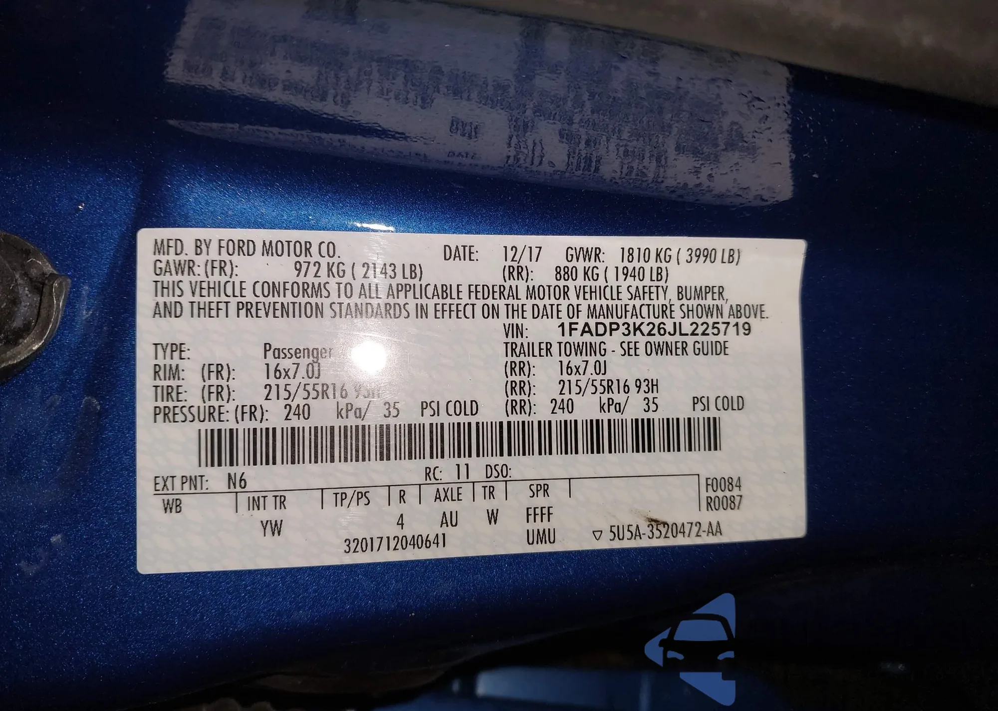 • VIN 1FA6P8TH7L5153798