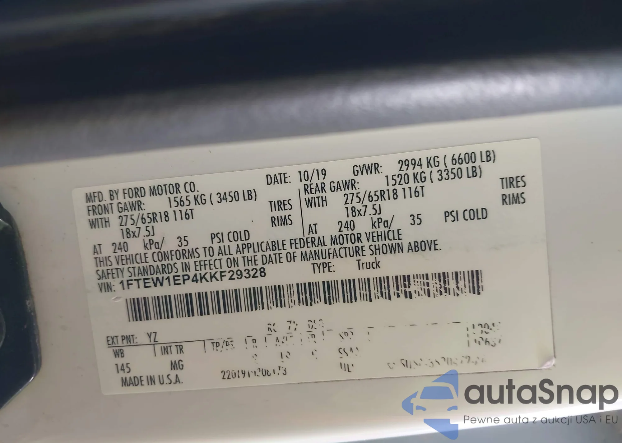 LOT: 43997077 VIN: 1FTEW1EP4KKF29328