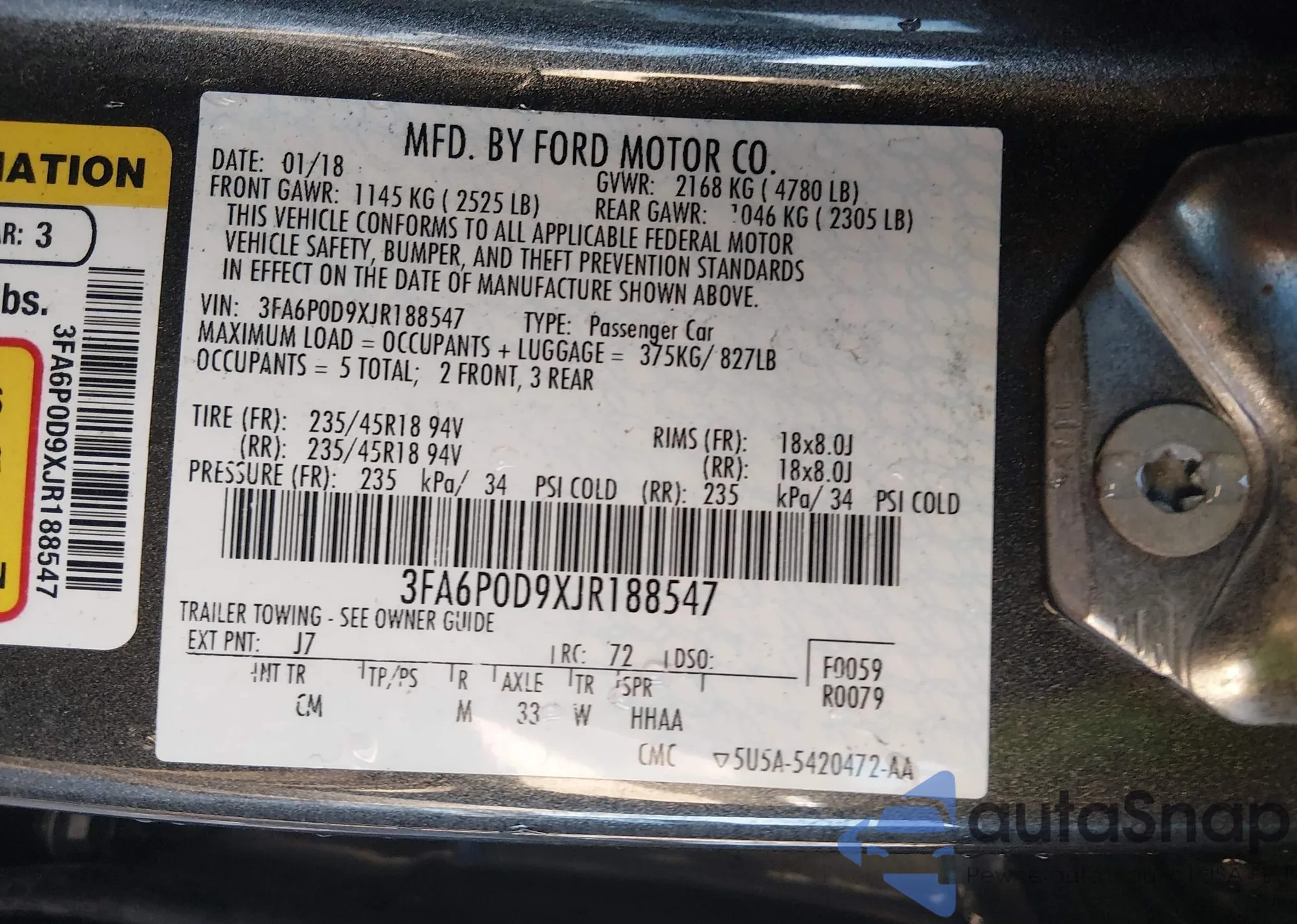 • VIN 3FA6P0D9XJR188547