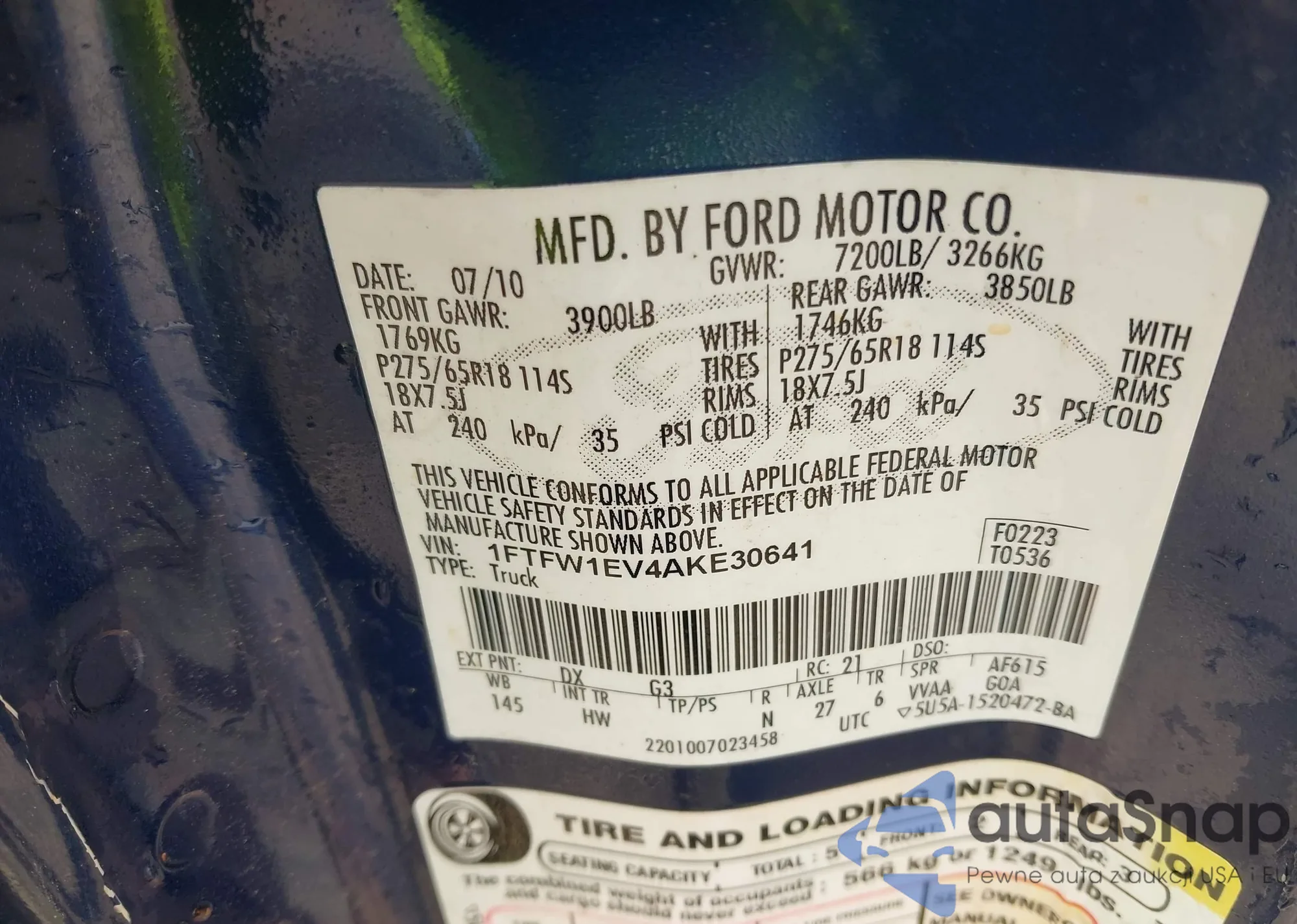 • VIN 1FTFW1EV4AKE30641