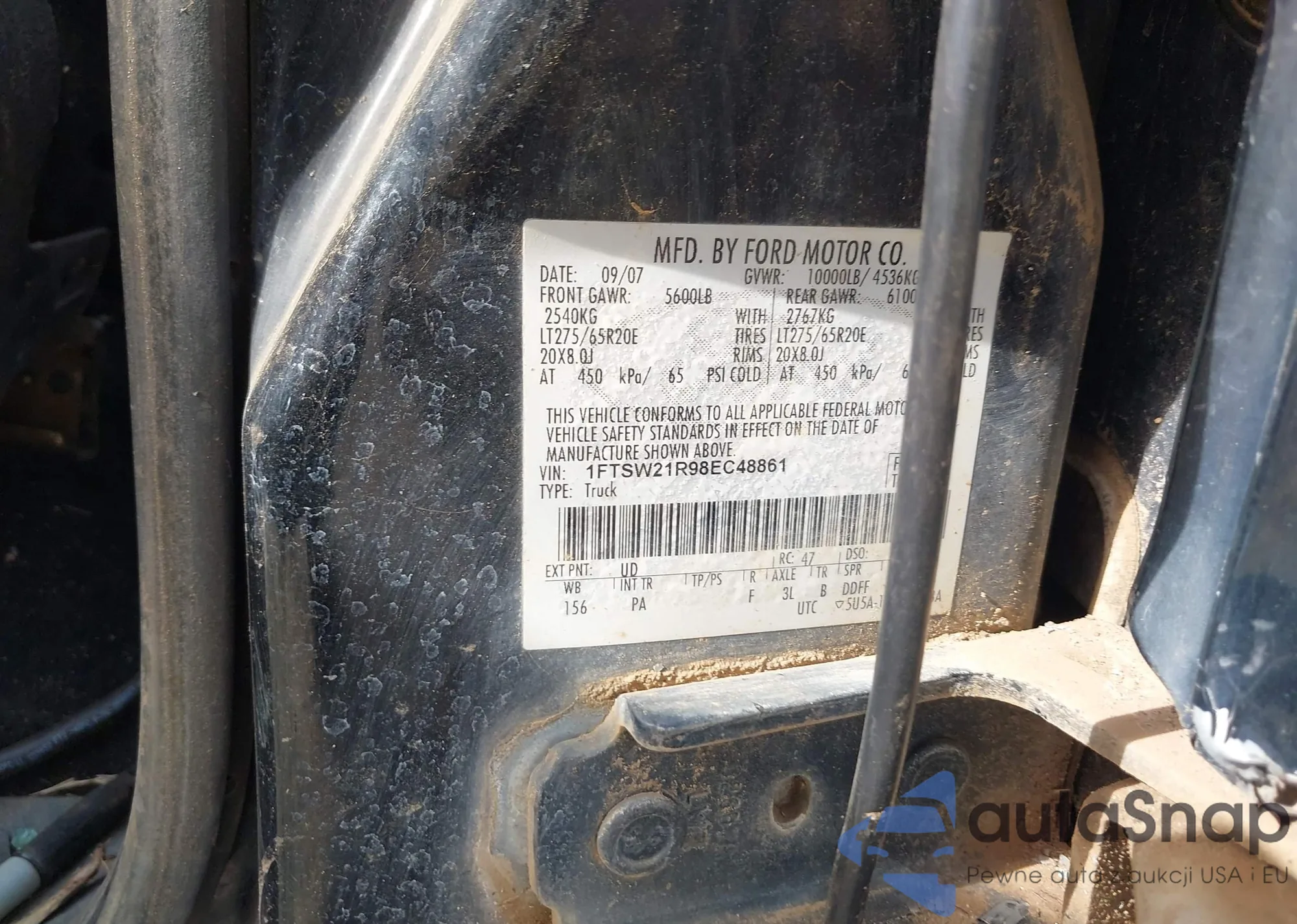 LOT: 43945934 VIN: 1FTSW21R98EC48861