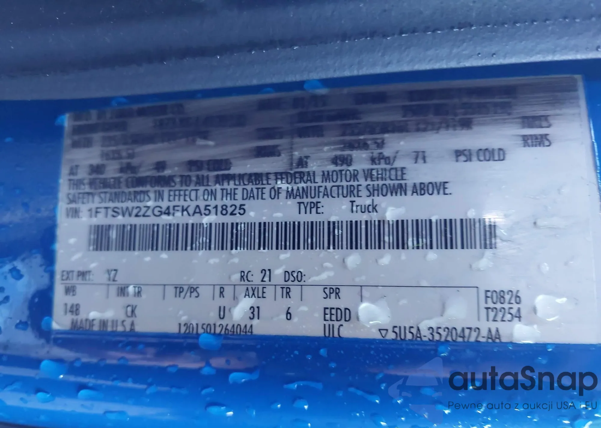 LOT: 43938282 VIN: 1FTSW2ZG4FKA51825
