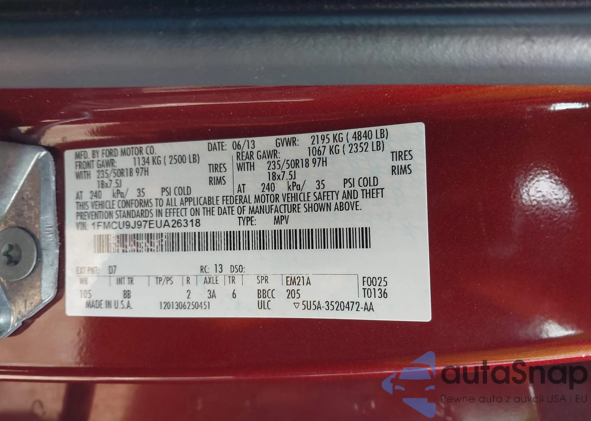 • VIN 1FMCU9J97EUA26318
